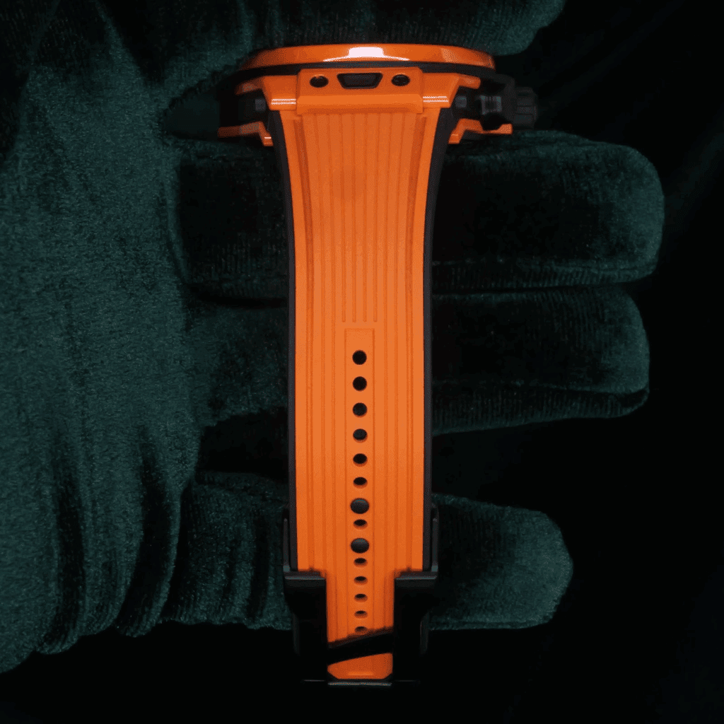 Now that we know how the Orange Ceramic fits into Hublot’s story, let’s look at how those ideas take shape in the case and strap design.