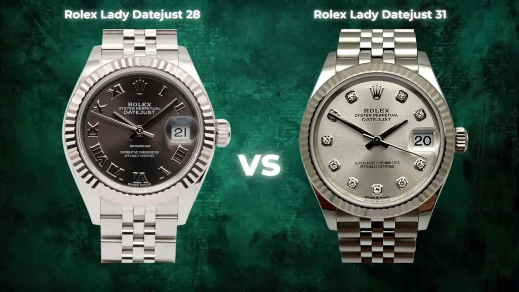 The Lady Datejust 28 and 31 share Rolex’s renowned craftsmanship, yet their subtle distinctions create unique personalities for each model. Focusing on size, design, and versatility helps highlight which watch best fits individual style and daily wear.