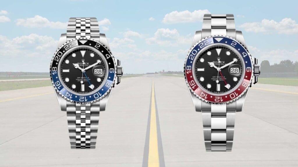 - Rolex GMT-Master II 126710BLRO – Known as the “Pepsi,” featuring the classic red-and-blue bezel