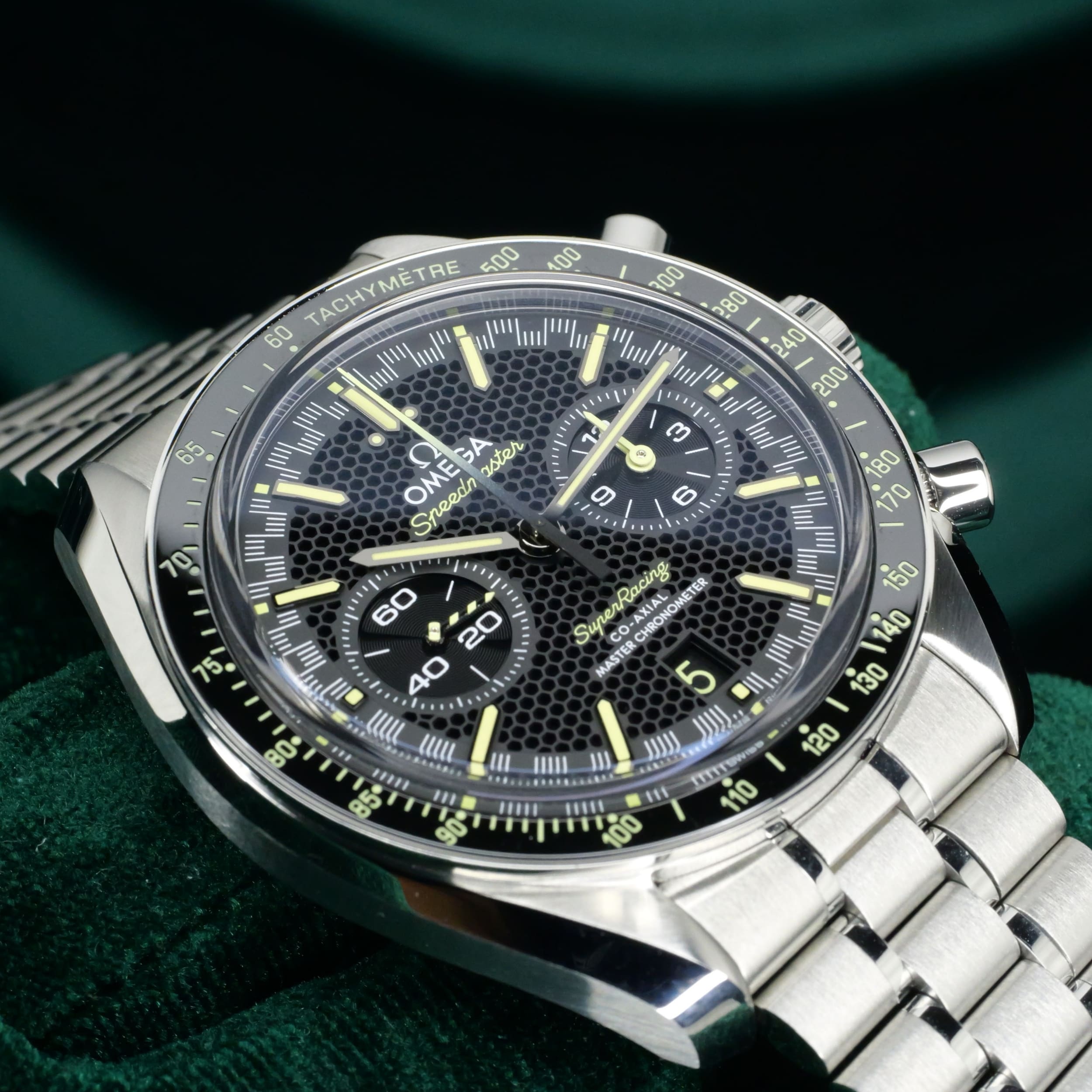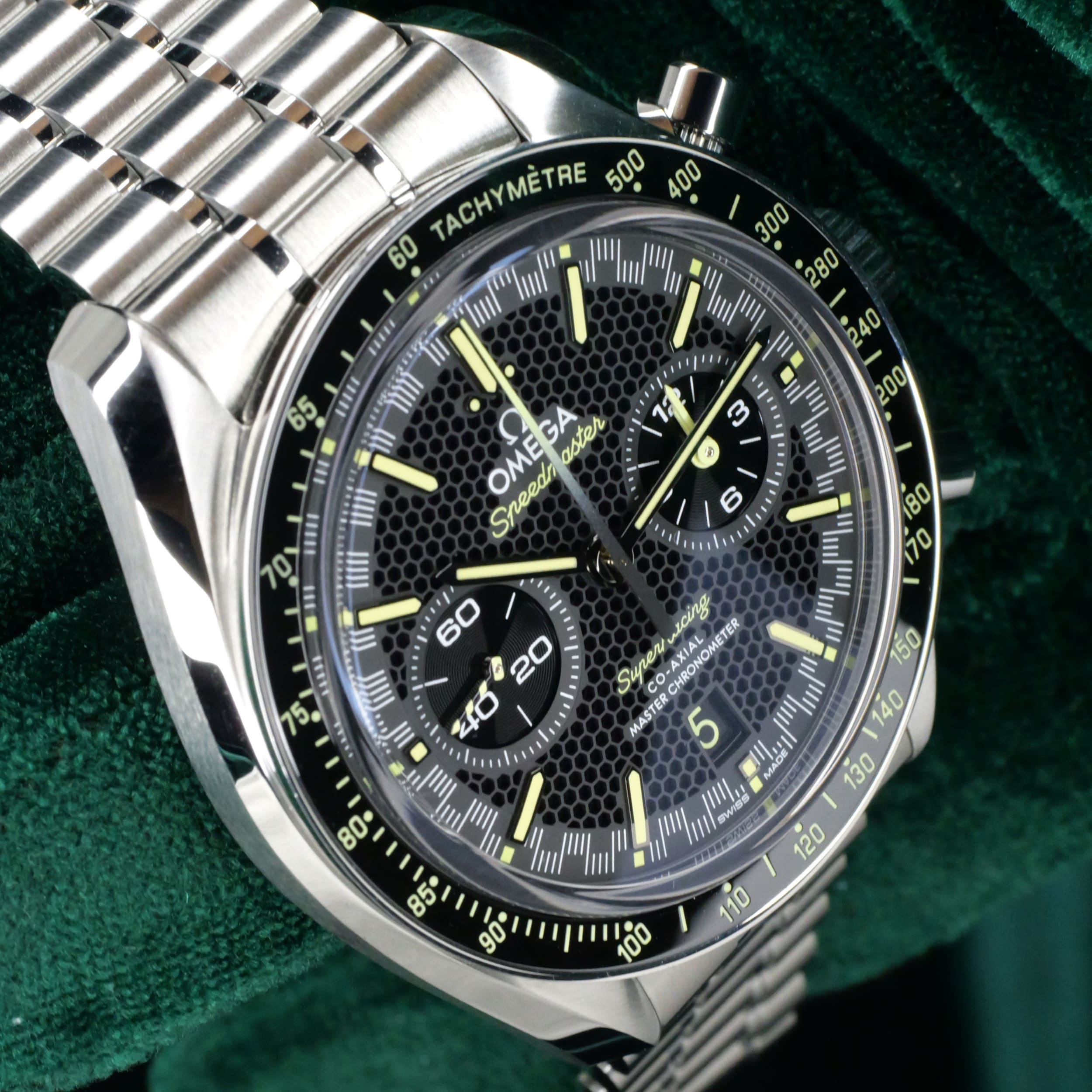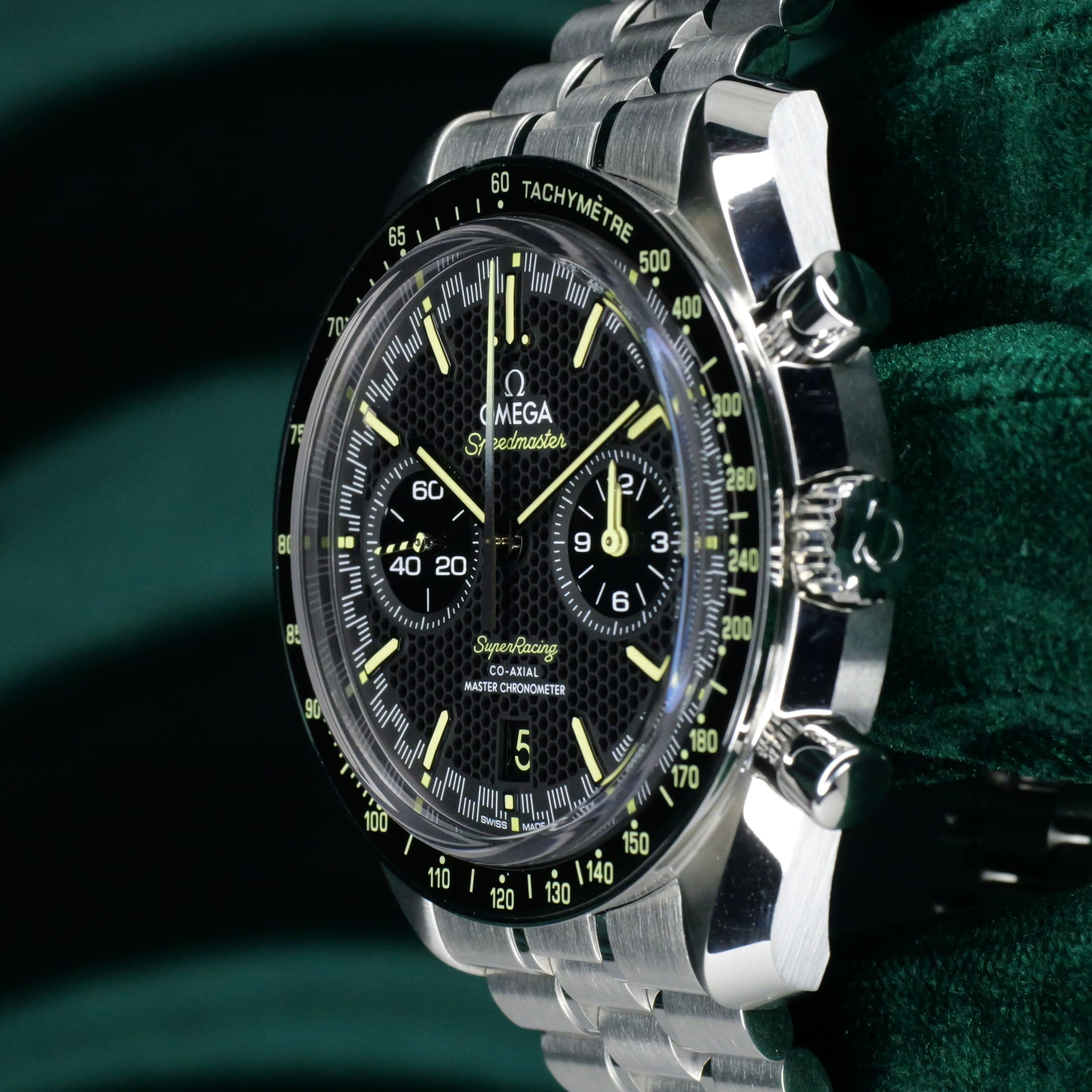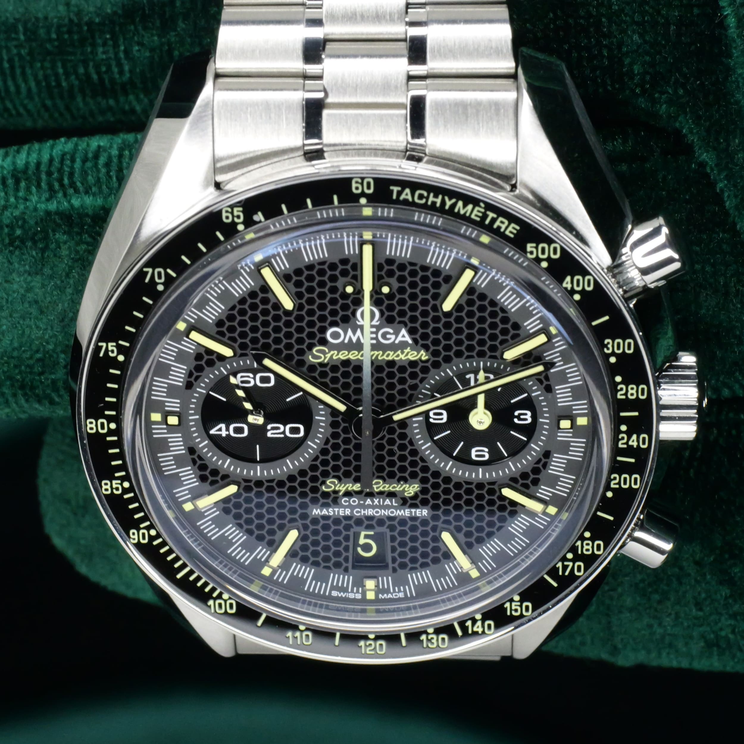 A bold declaration of motorsport heritage and modern watchmaking mastery, the Speedmaster Super Racing Bumblebee stands apart as one of the most visually arresting and sophisticated references Omega has offered. Ideal for the enthuasiasts frequenting motorsport events, sporting activities and evenings where one wants to be bold and command attention.