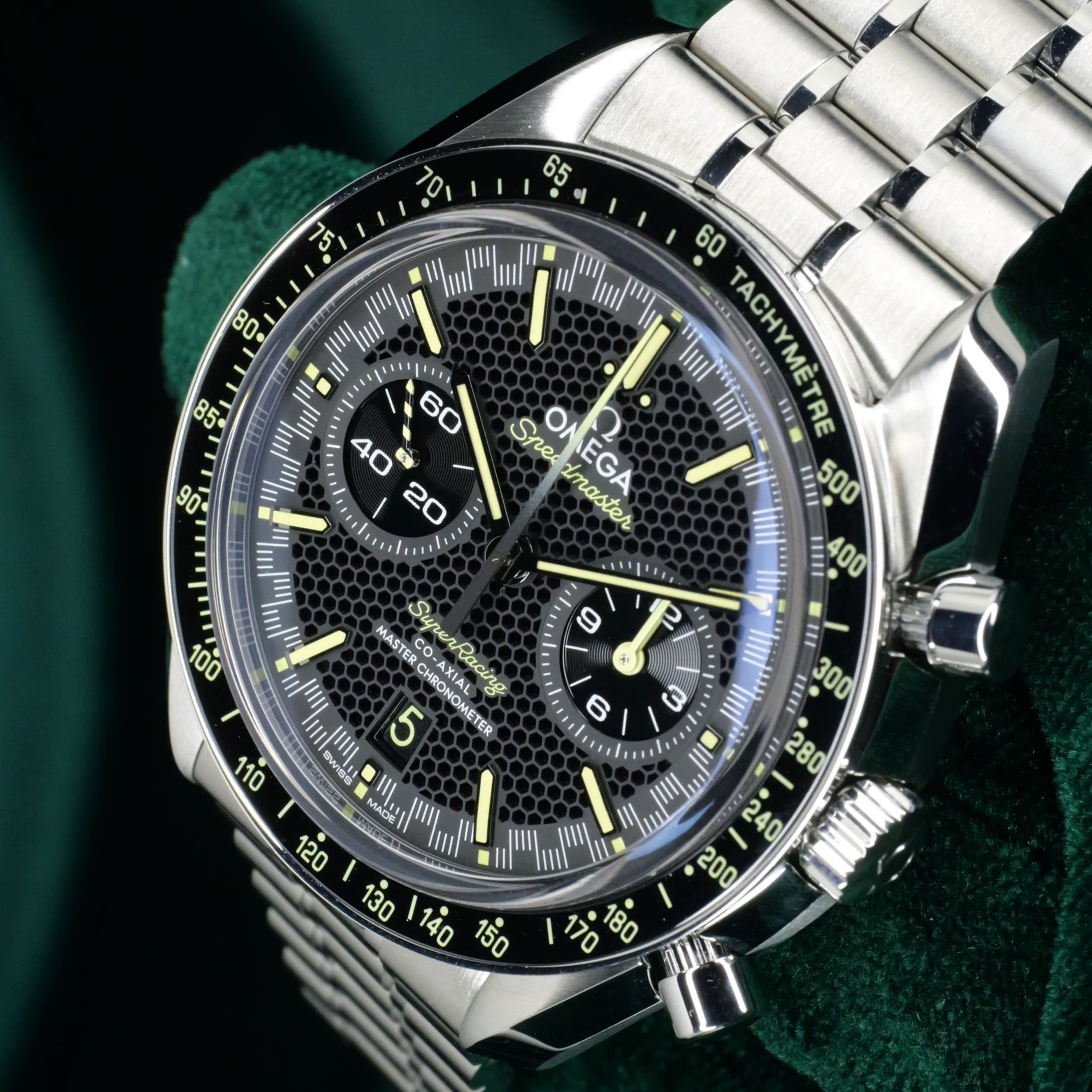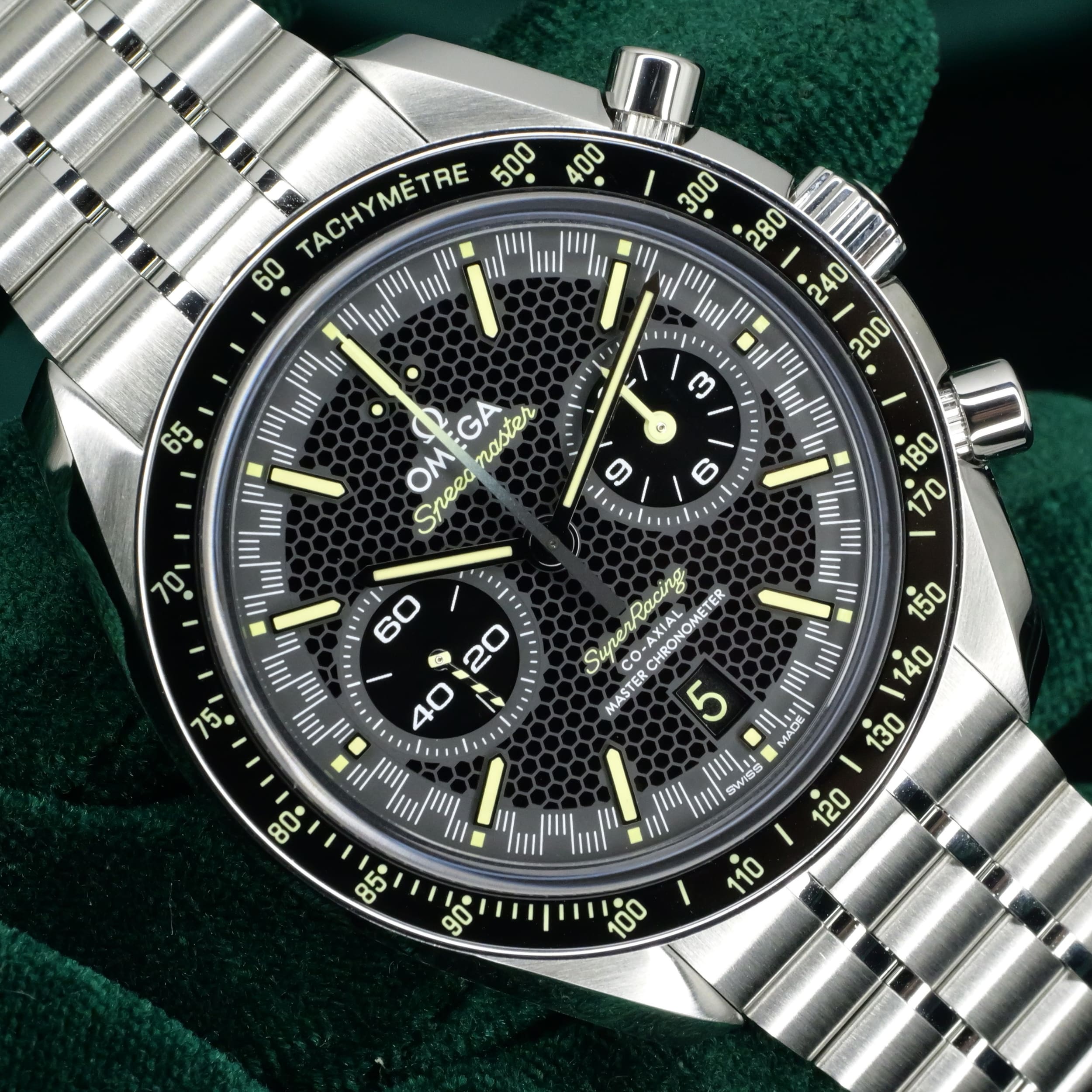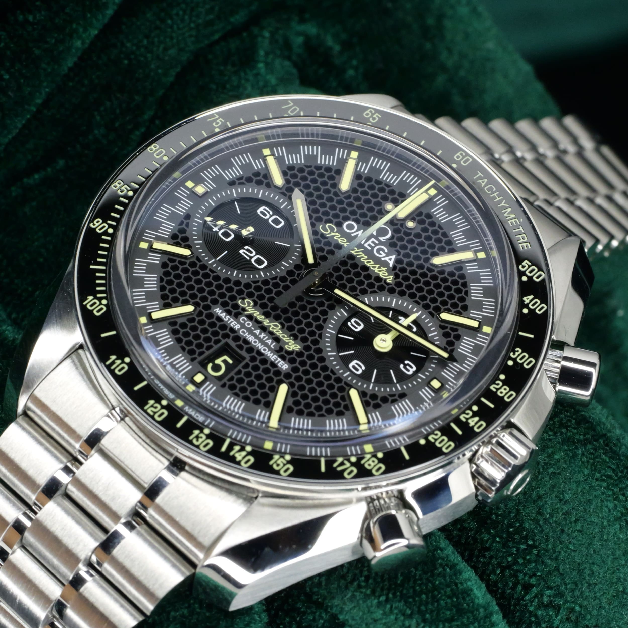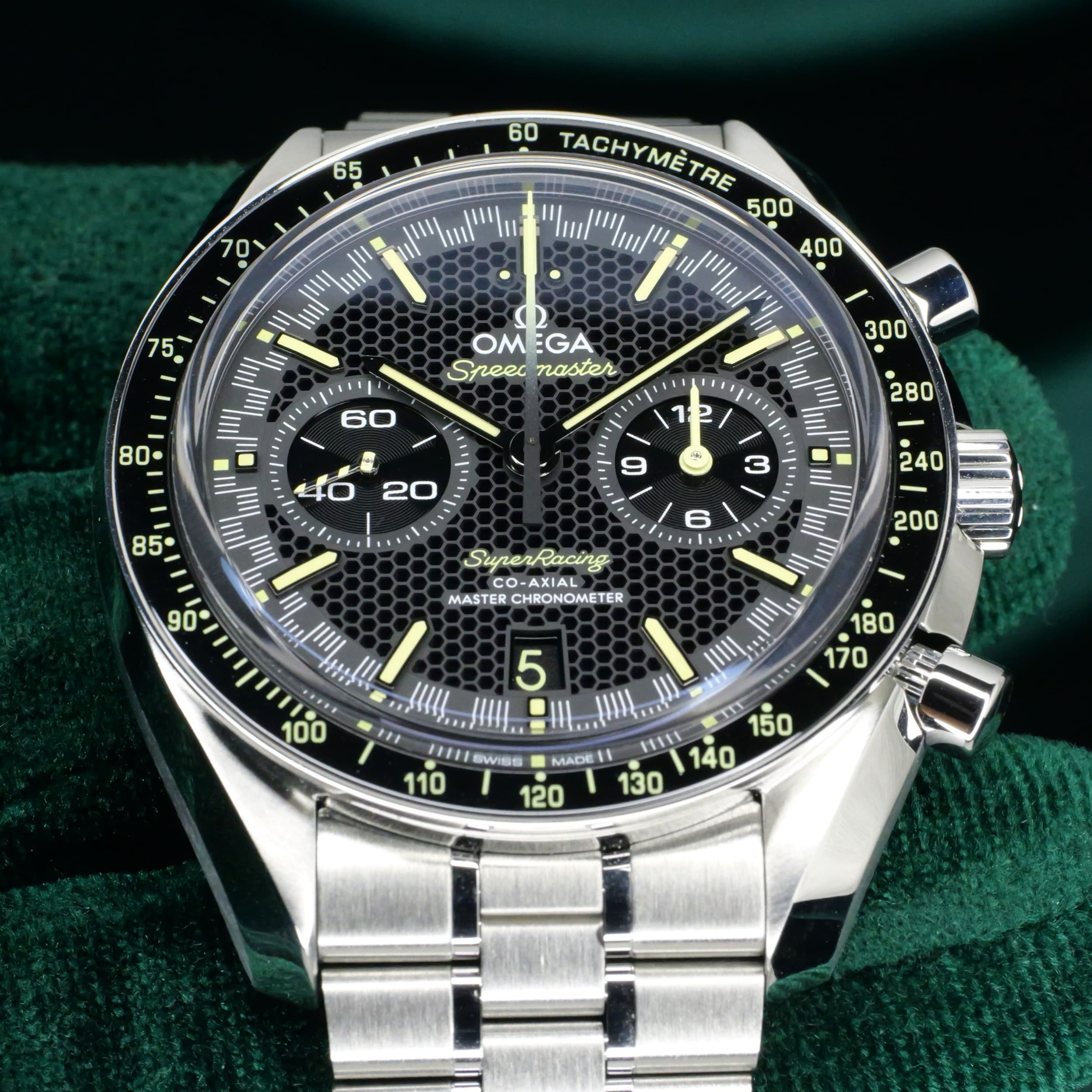 A bold declaration of motorsport heritage and modern watchmaking mastery, the Speedmaster Super Racing Bumblebee stands apart as one of the most visually arresting and sophisticated references Omega has offered. Ideal for the enthuasiasts frequenting motorsport events, sporting activities and evenings where one wants to be bold and command attention.