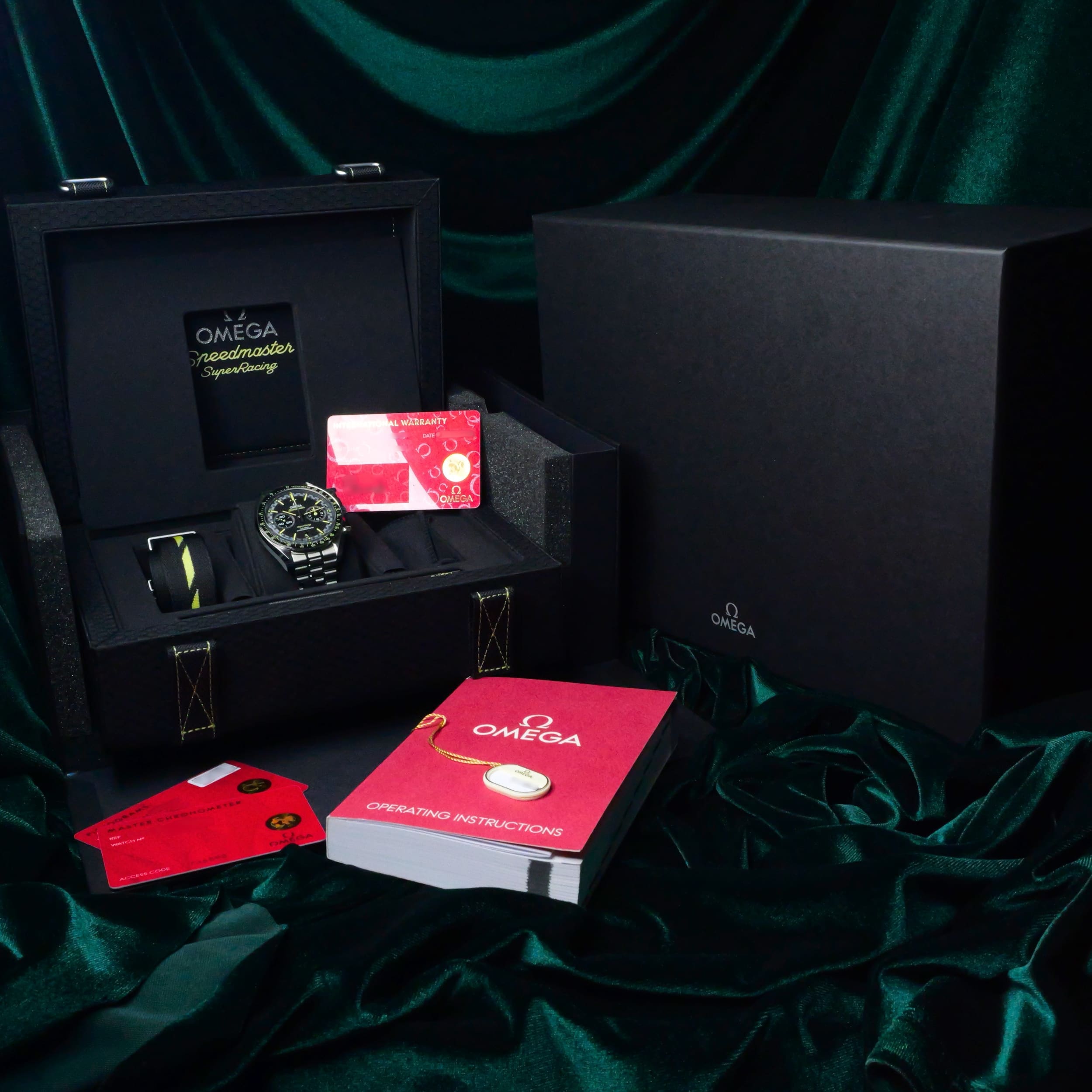 Comes as a full set, triple-boxed with warranty cards, warranty, white tag, operating instructions, NATO strap, and strap changing tool.