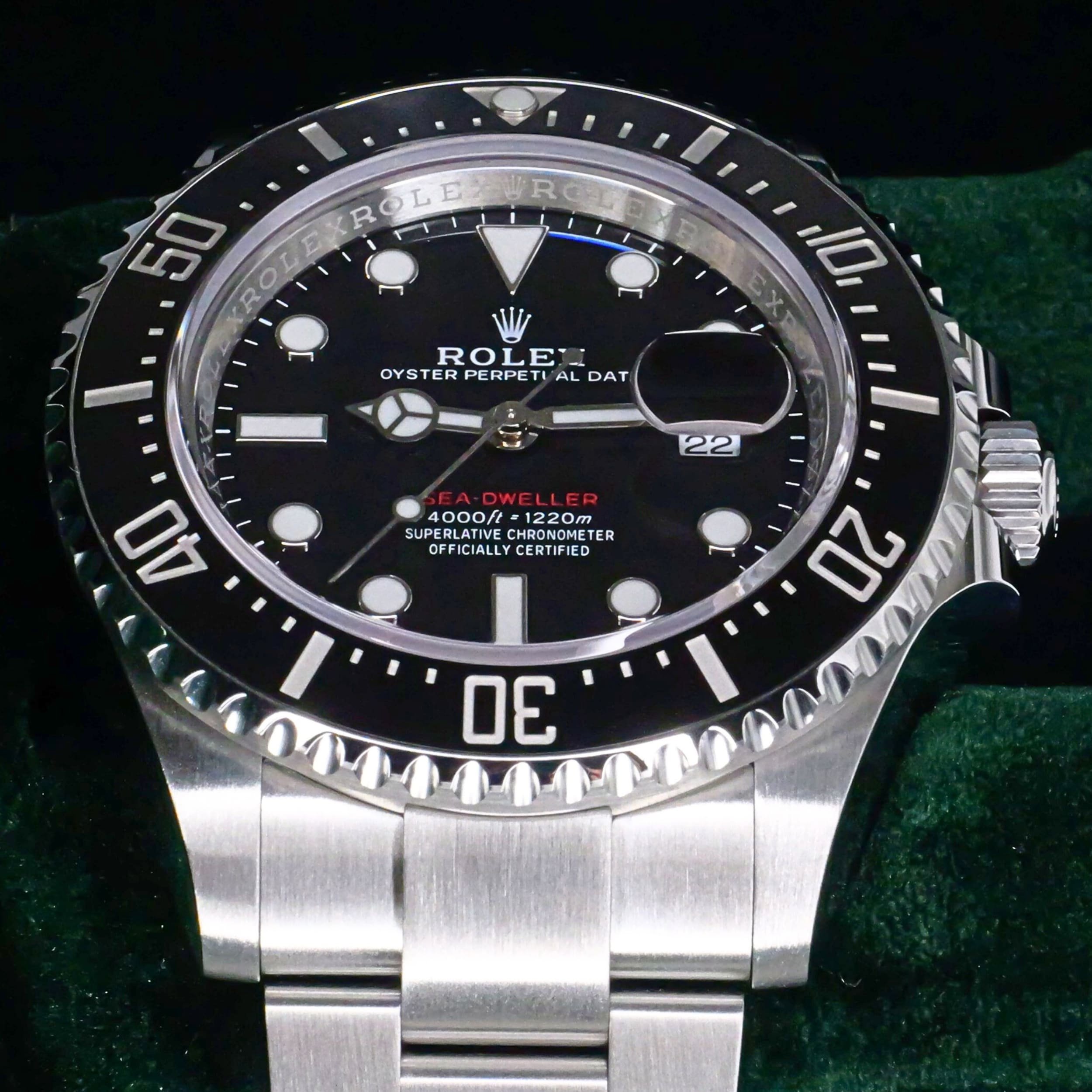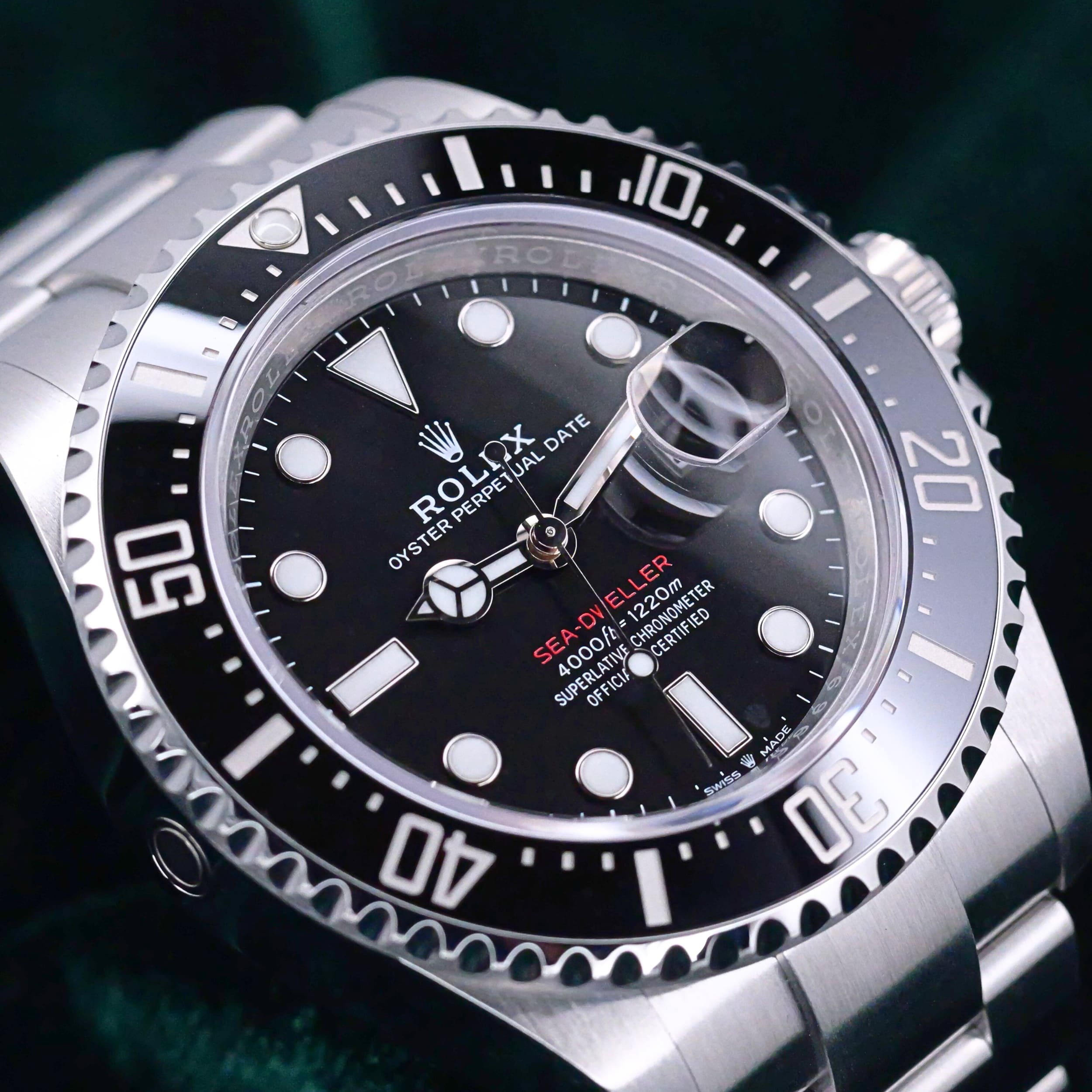 Functions include hours, minutes, seconds, date, dive timing, and complemented by a helium escape valve. The screw-down crown on the right side of the case manually winds the movement, quick sets the date wheel, and adjusts the time when fully extended. The automatic helium escape valve at 9 o’clock releases internal pressure during decompression, while the rotating ceramic bezel precisely tracks elapsed dive time. Chromalight lume across the hands and hour markers ensures optimal legibility even in total darkness.