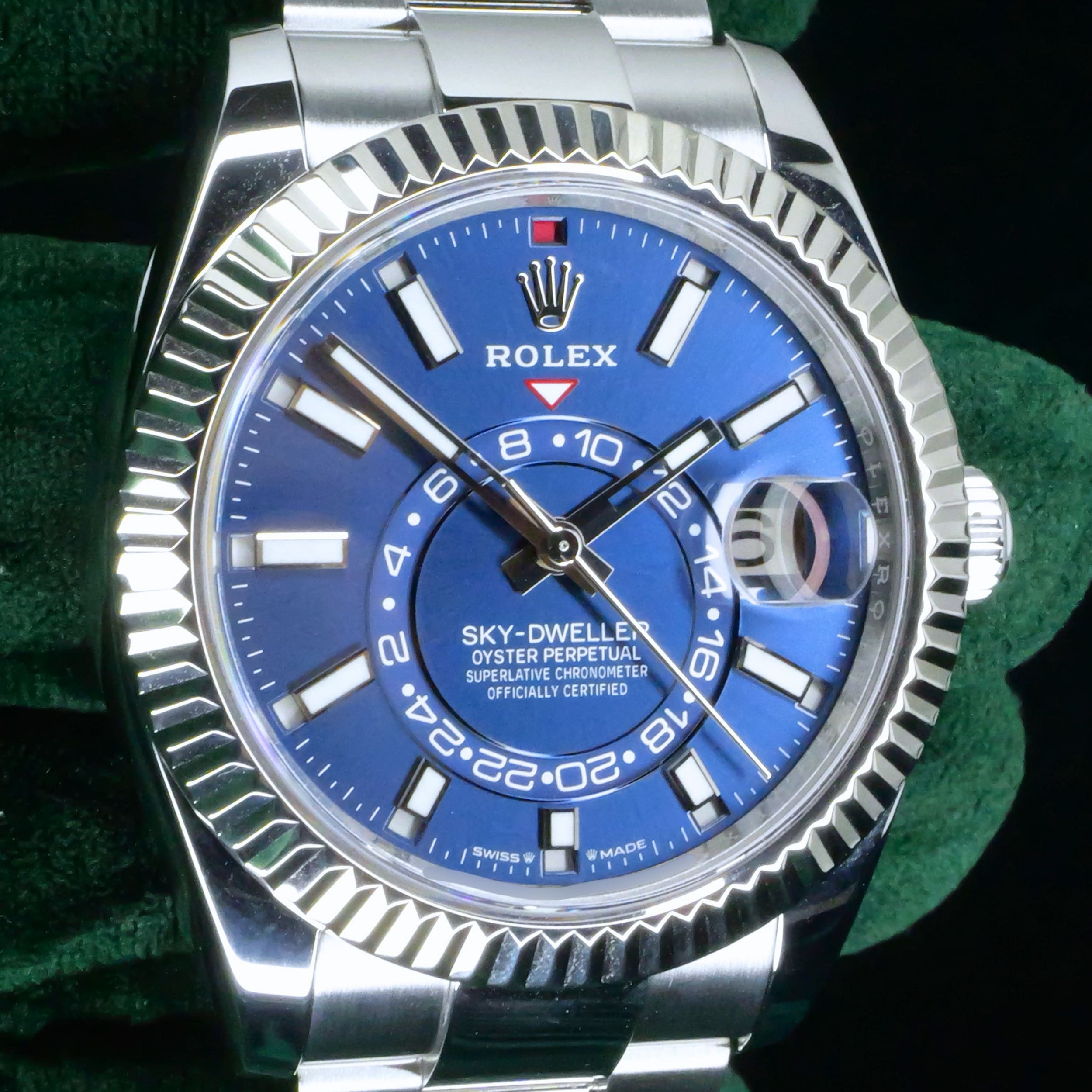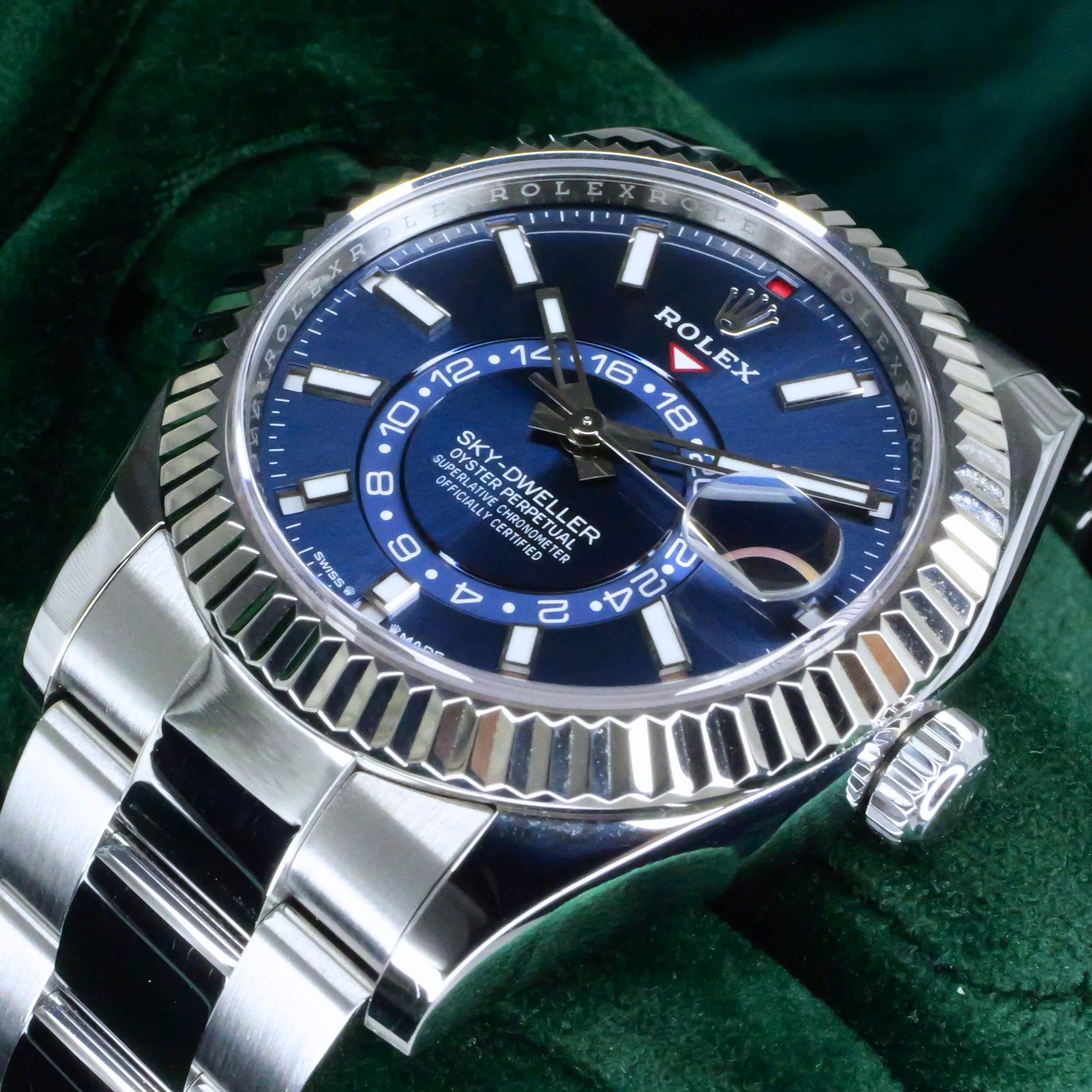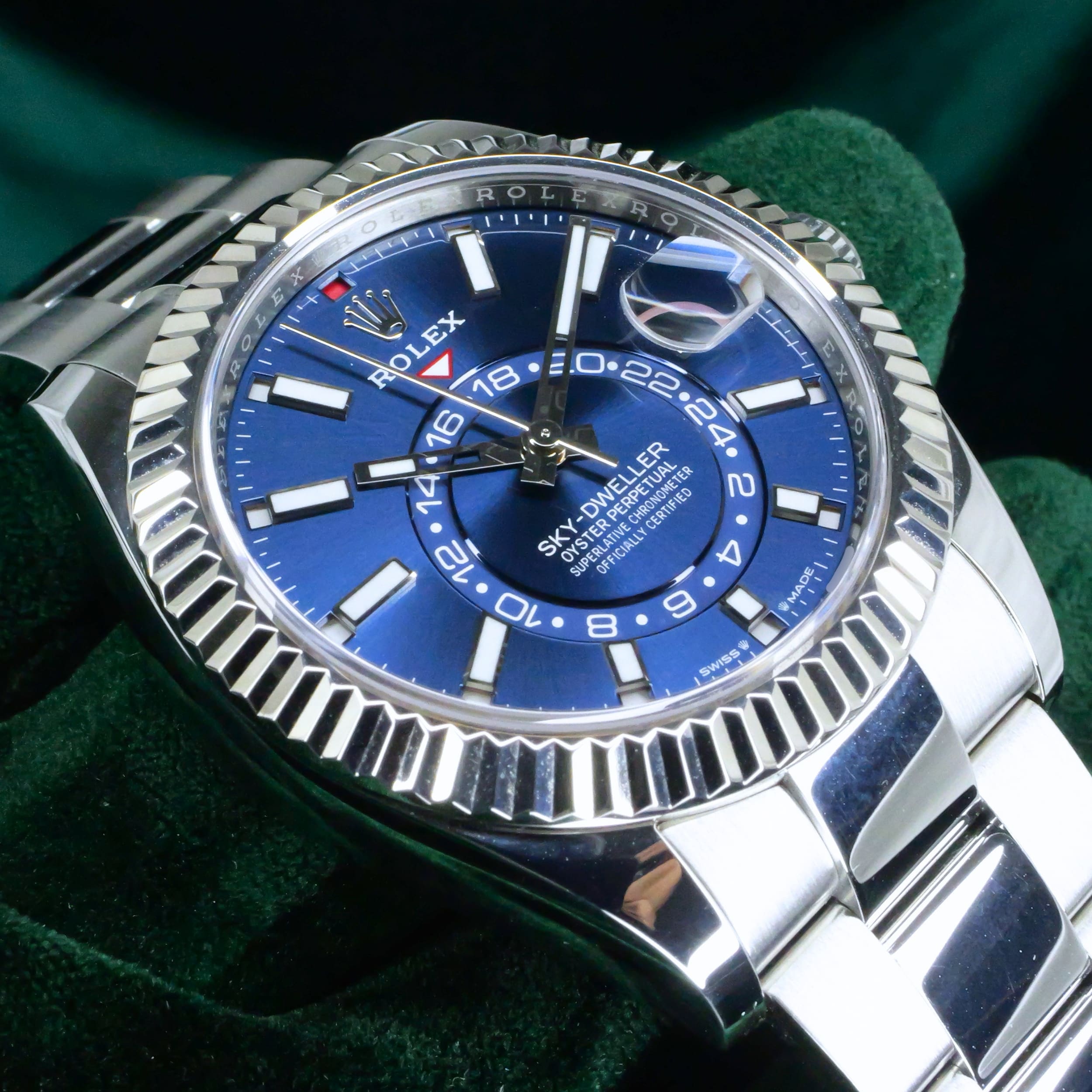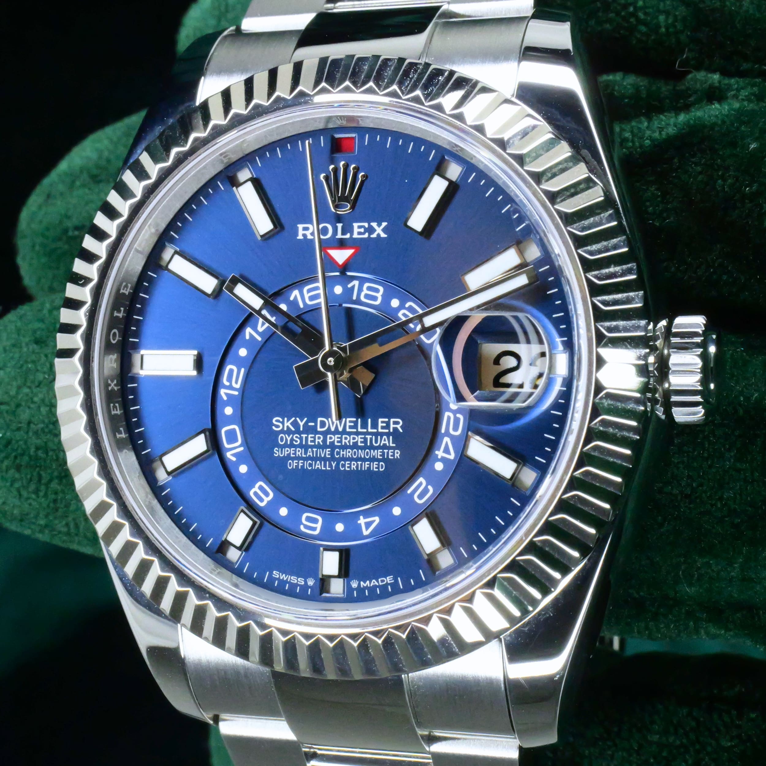 Comes as a full set, double-boxed with warranty card, warranty wallet, sky-dweller manual, Rolex white tag and Rolex green tag.