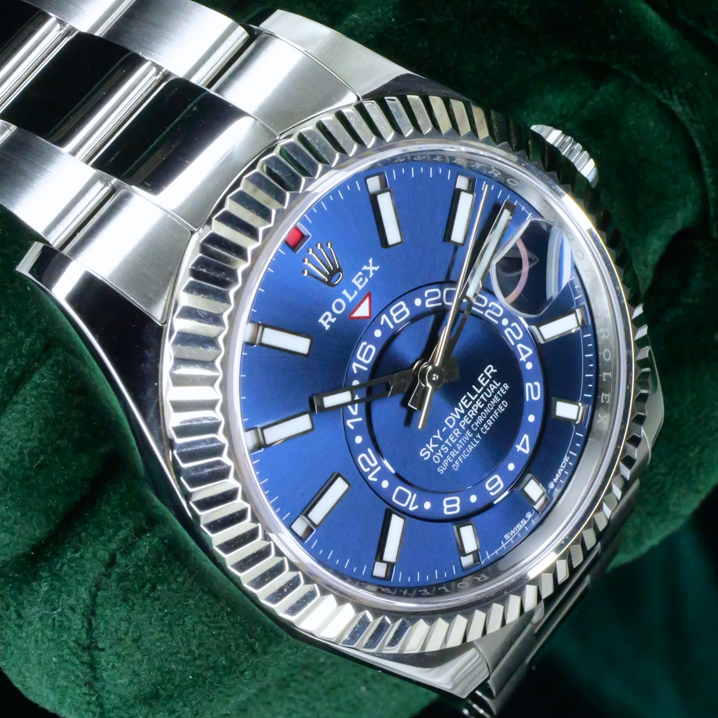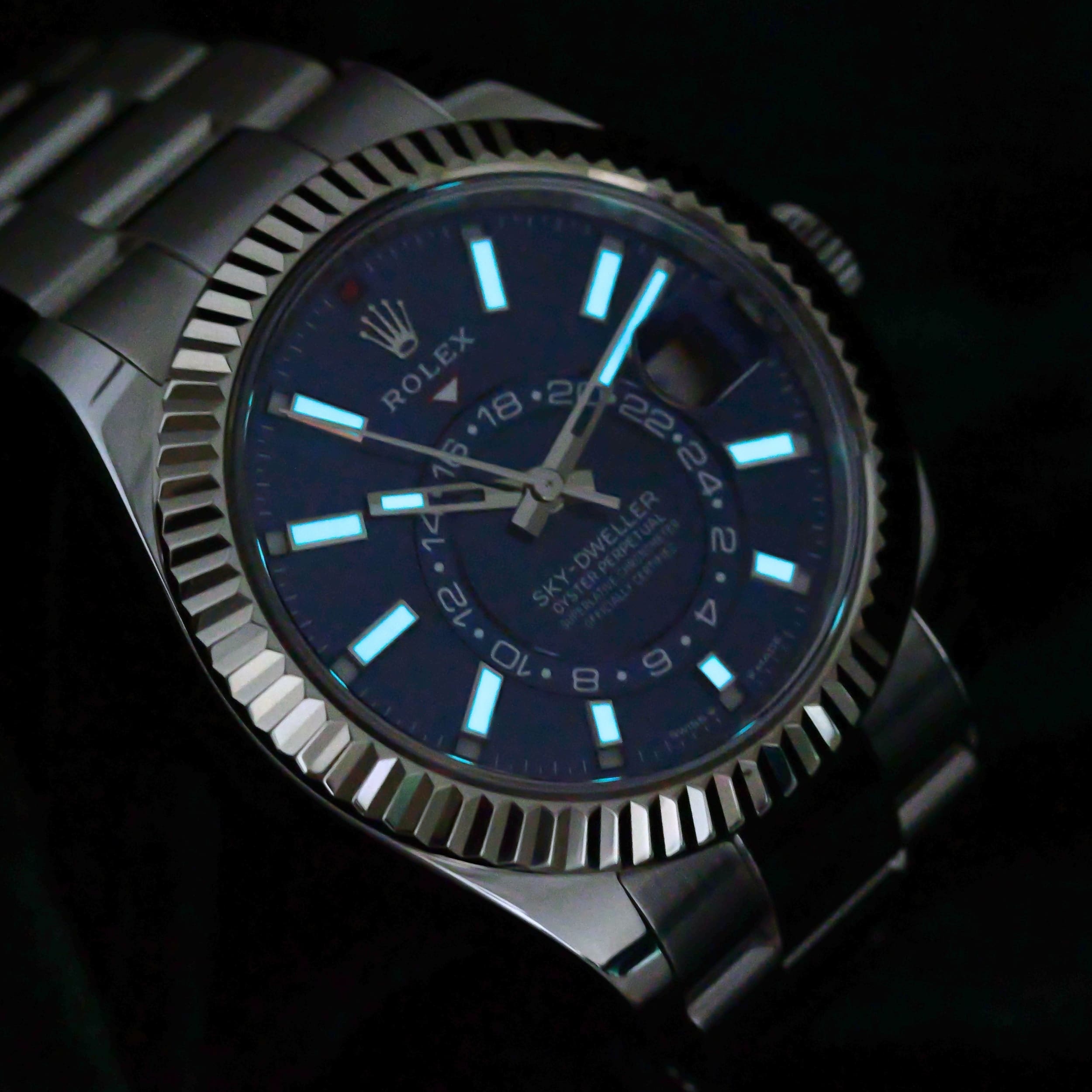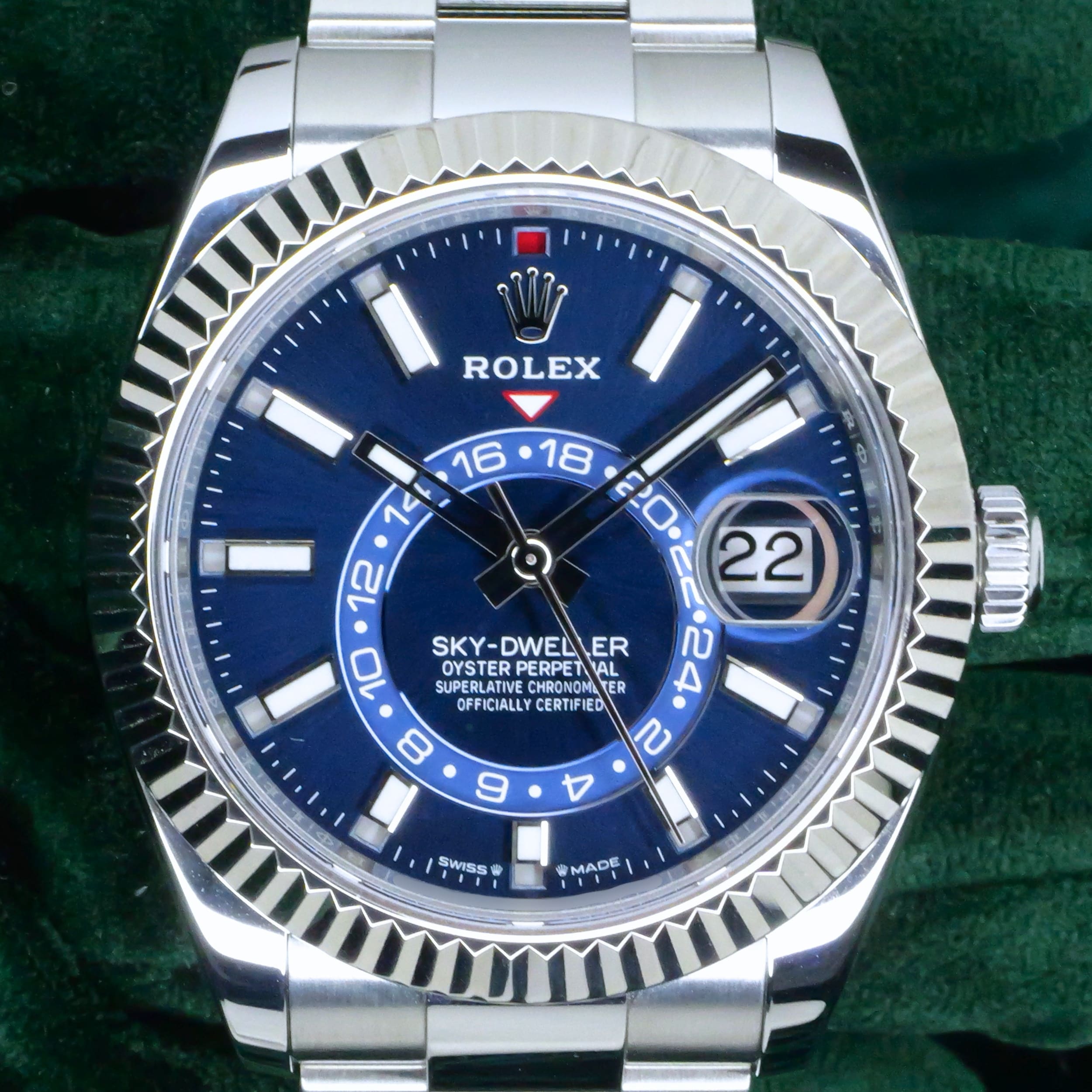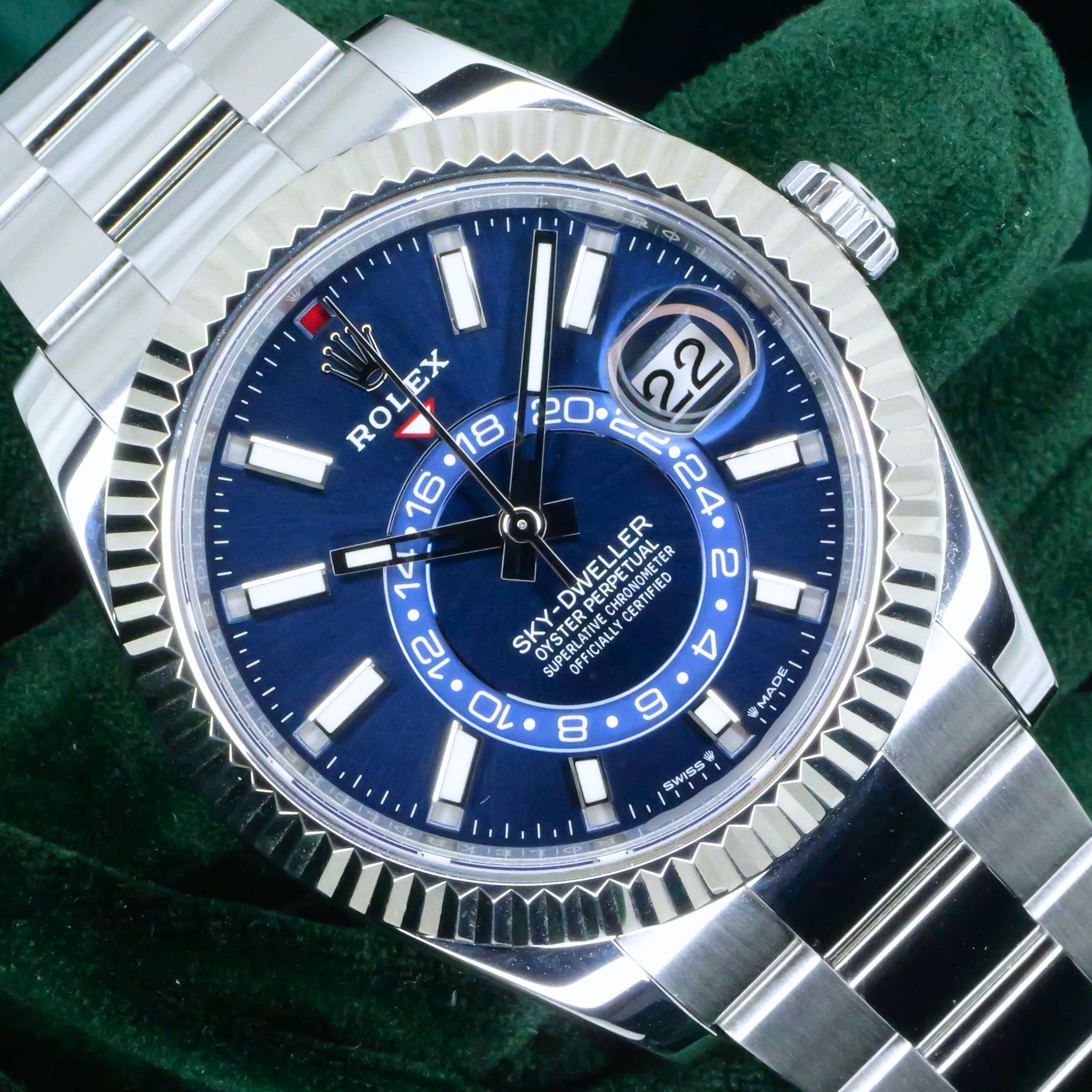 Comes as a full set, double-boxed with warranty card, warranty wallet, sky-dweller manual, Rolex white tag and Rolex green tag.