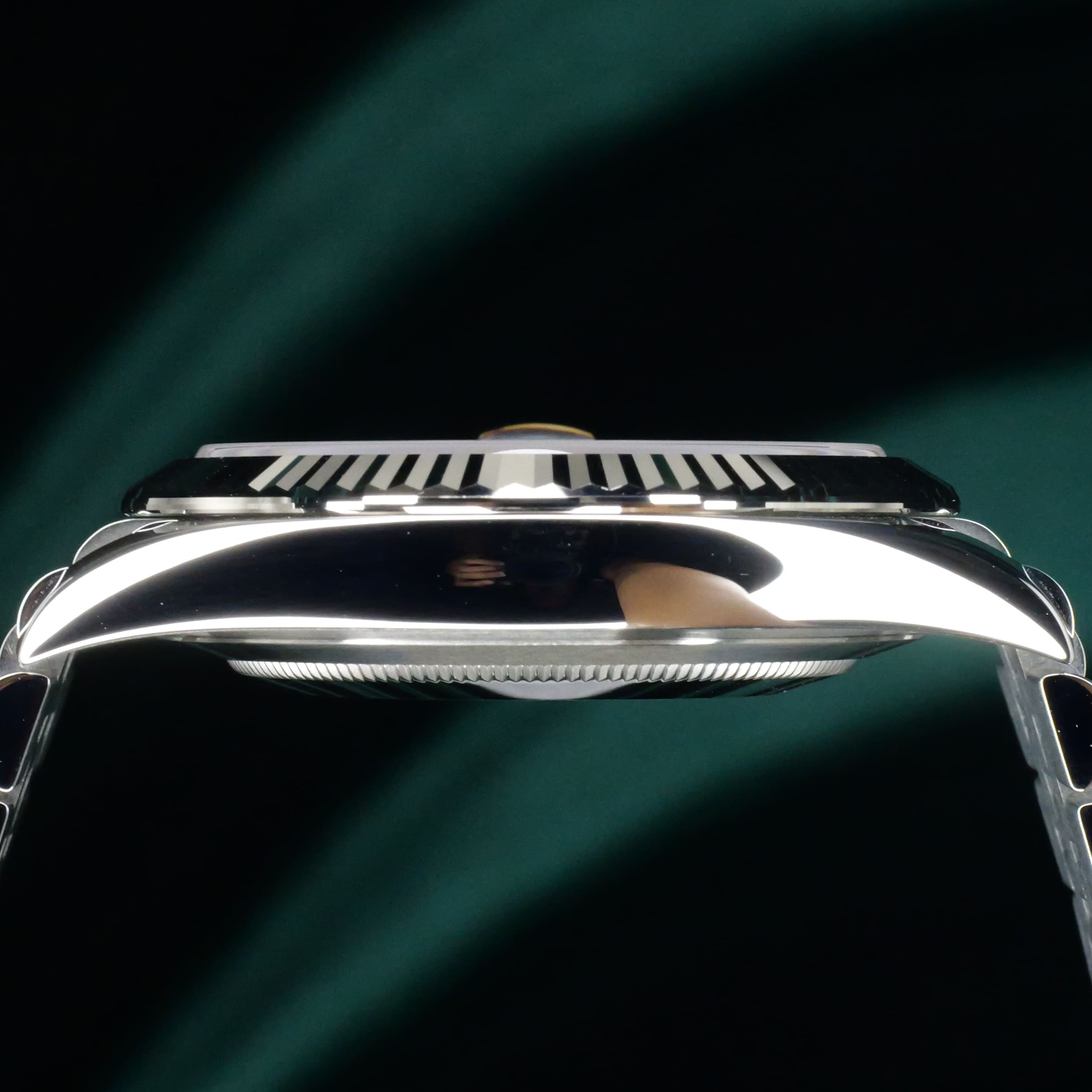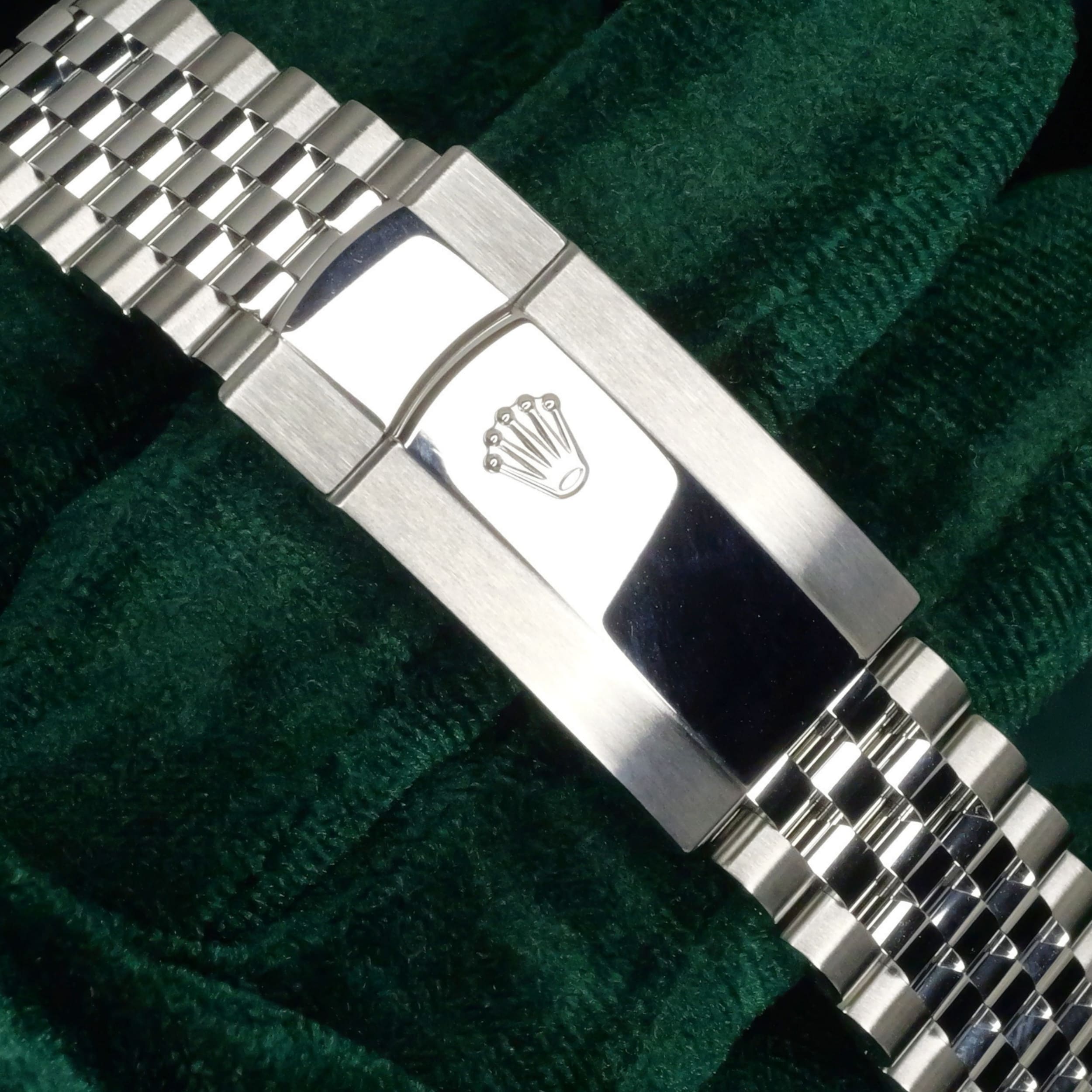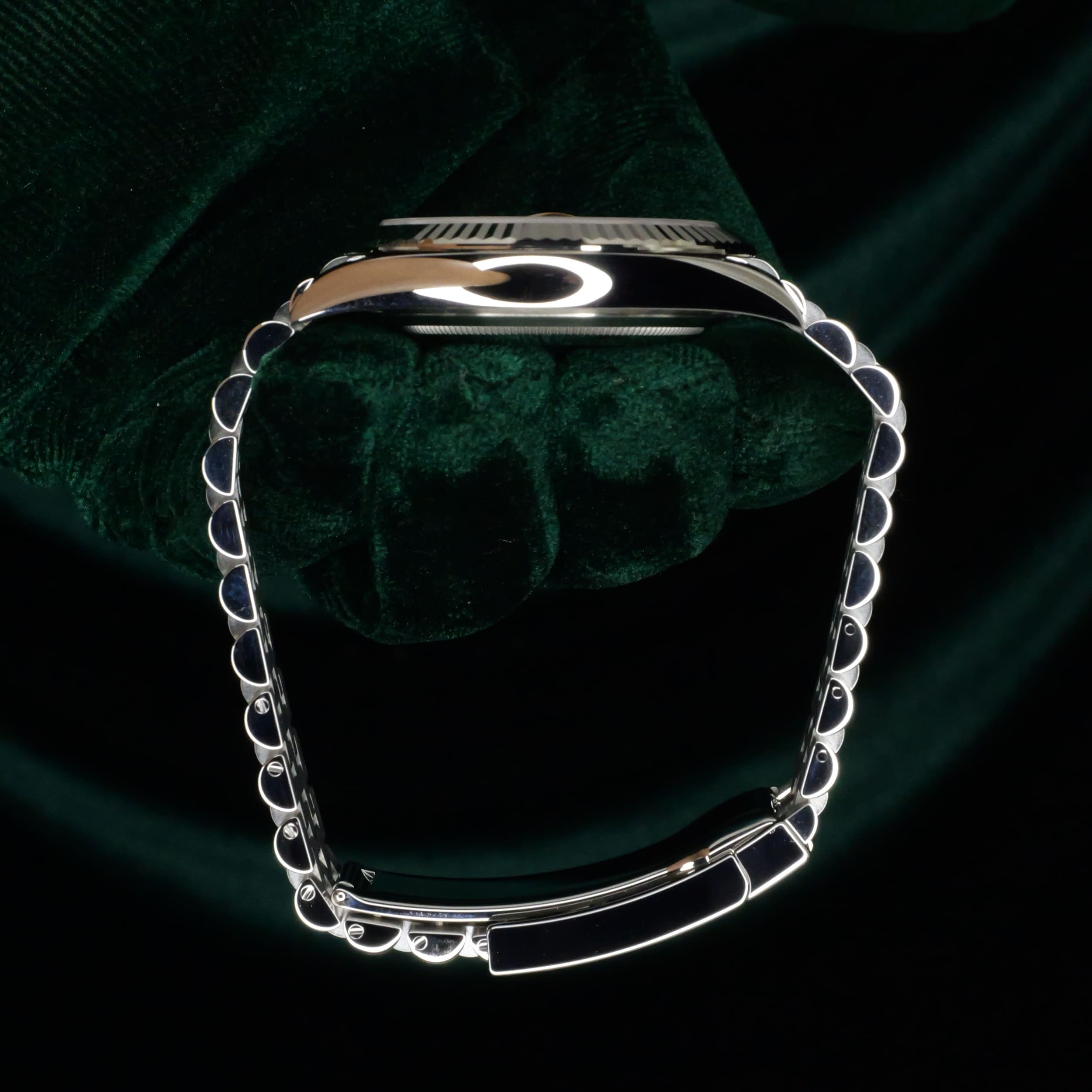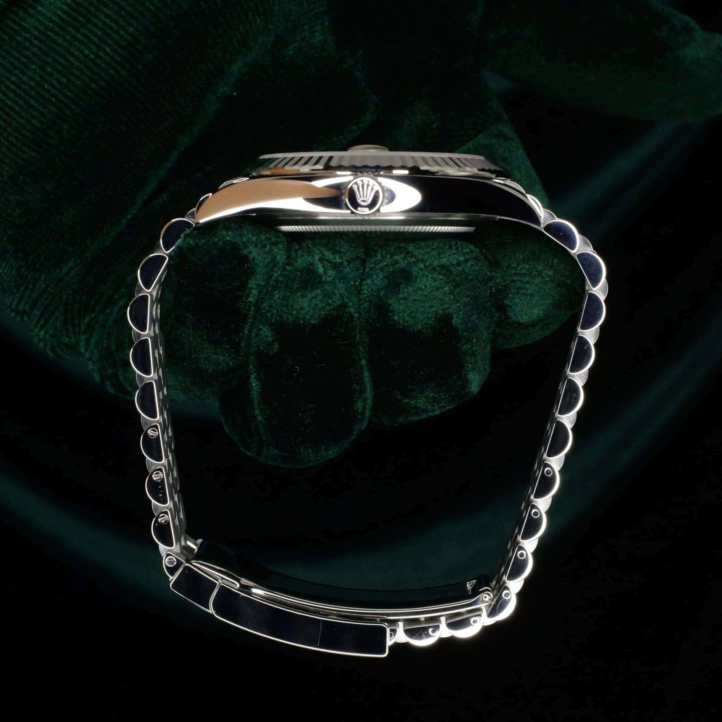 Dazzling to the eye, the white gold fluted bezel paired with the luster of the azzuro-blue dial can draw attention without being ostentatious. Paired with the two-tone white gold stainless steel Jubilee bracelet, this a combination that balances old-world Rolex elegance with modern proportions.
