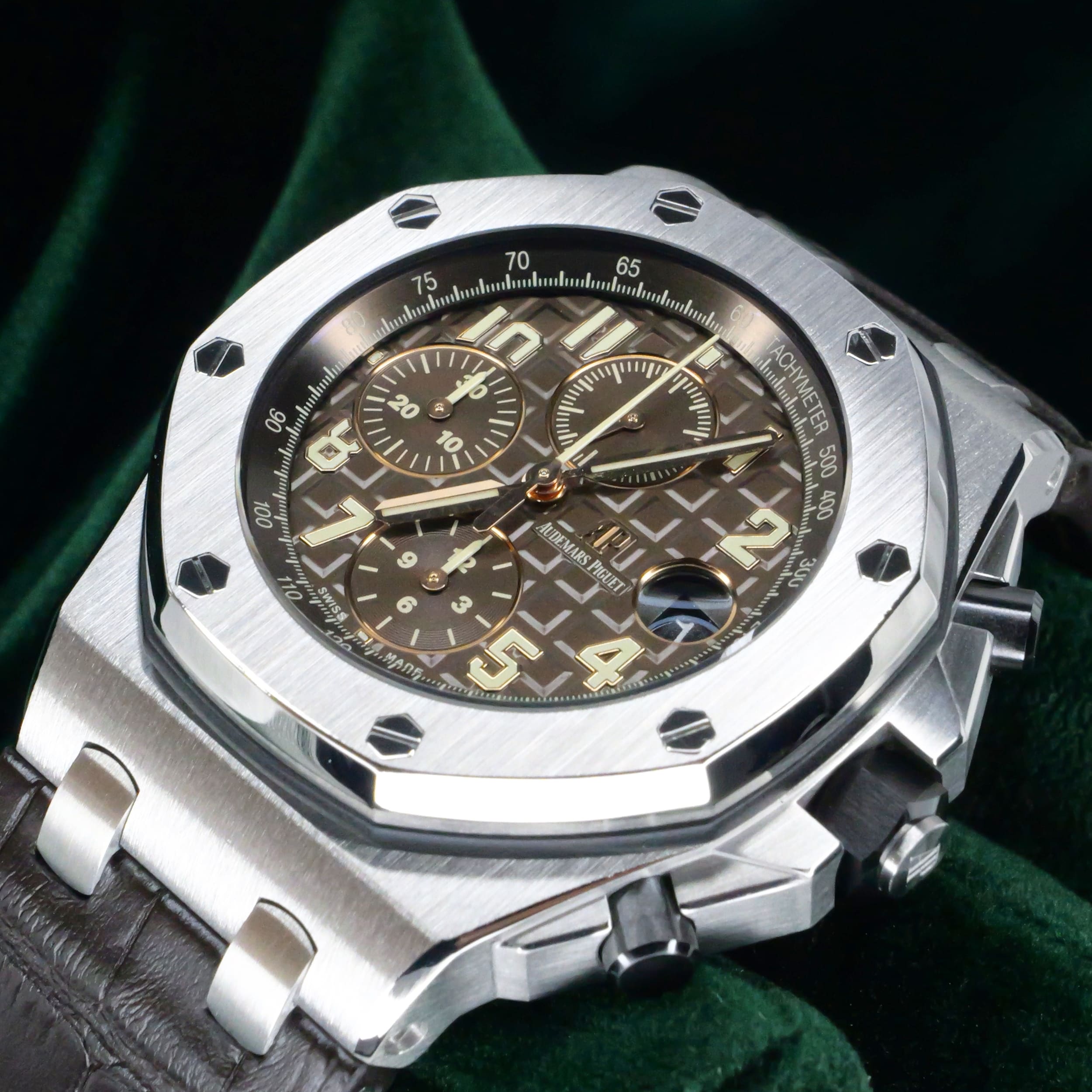 Rich Havana brown tones across the dial and leather strap paired with the bold chronograph design create a warm, distinctive look rarely seen in modern luxury sports watches. Ideal for collectors who appreciate unique color tones and bold chronograph styling, making it a standout piece that adds warmth and character to any collection.