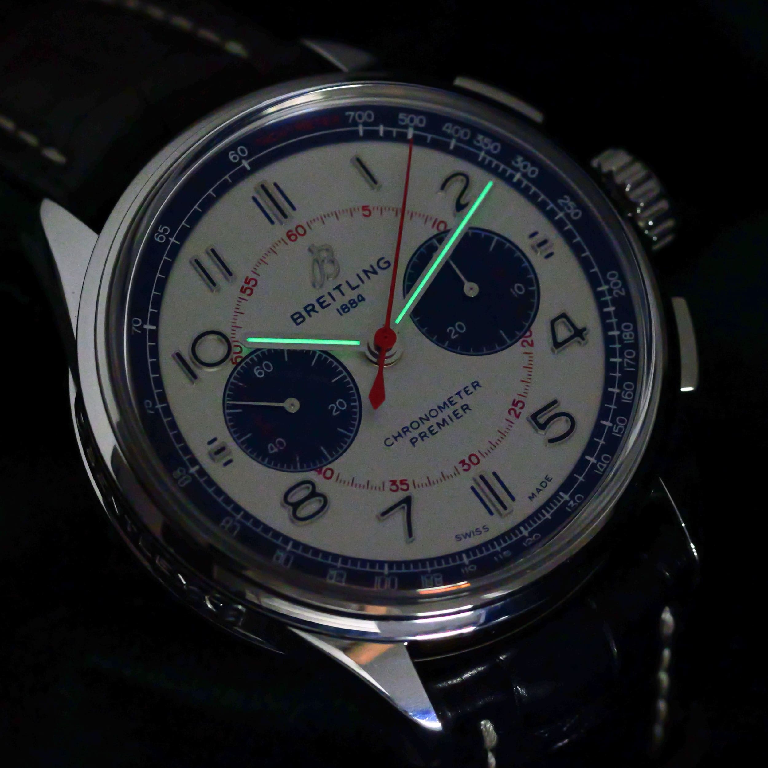 Comes as a full set, double-boxed with warranty card, certificat booklet, warranty wallet, watch pillow, manual booklet, and Breitling tag.