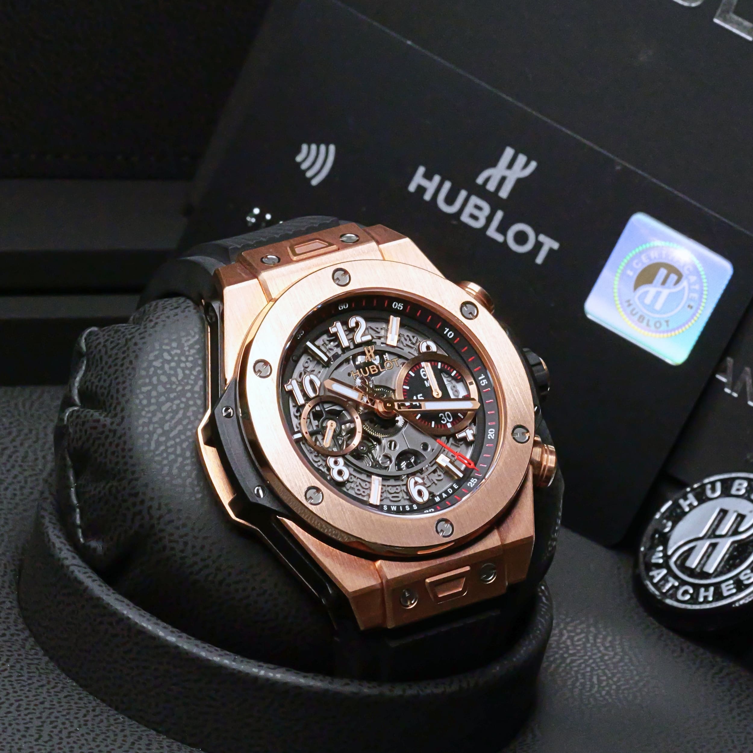 Taking inspiration from exposed machinery in motion, this timepiece with a skeleton dial unveils the rhythm beneath the surface, transforming every gear and bridge into elements of the design. Ideal for collectors who enjoy seeing the mechanics at work, this Big Bang Unico delivers strong presence with a focus on movement, depth, and modern materials.