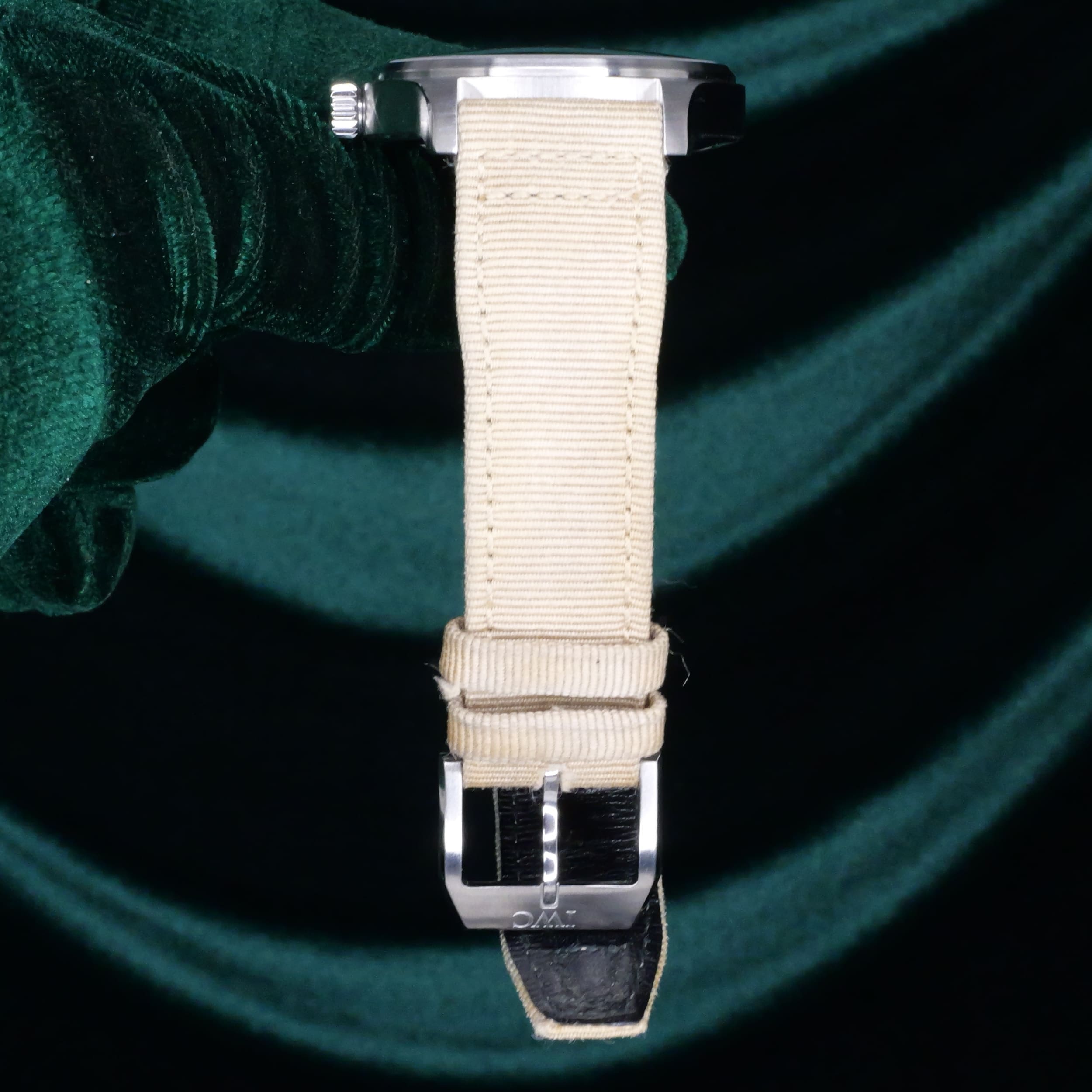 Combining nearly a century of aviation heritage with a discontinued configuration; this unique reference comes across once in a blue moon. Pairing the beautiful sunburst silver dial with the beige strap, its neutral tones can be worn in every day occasions yet strong enough to make a statement in the boardroom.