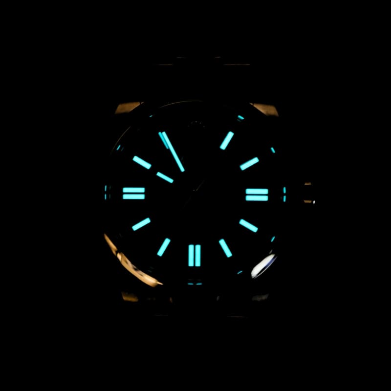 The blue dial paired with the stainless steel gives it a cool and classy look. The lume is shining bright and has a beautiful pattern.