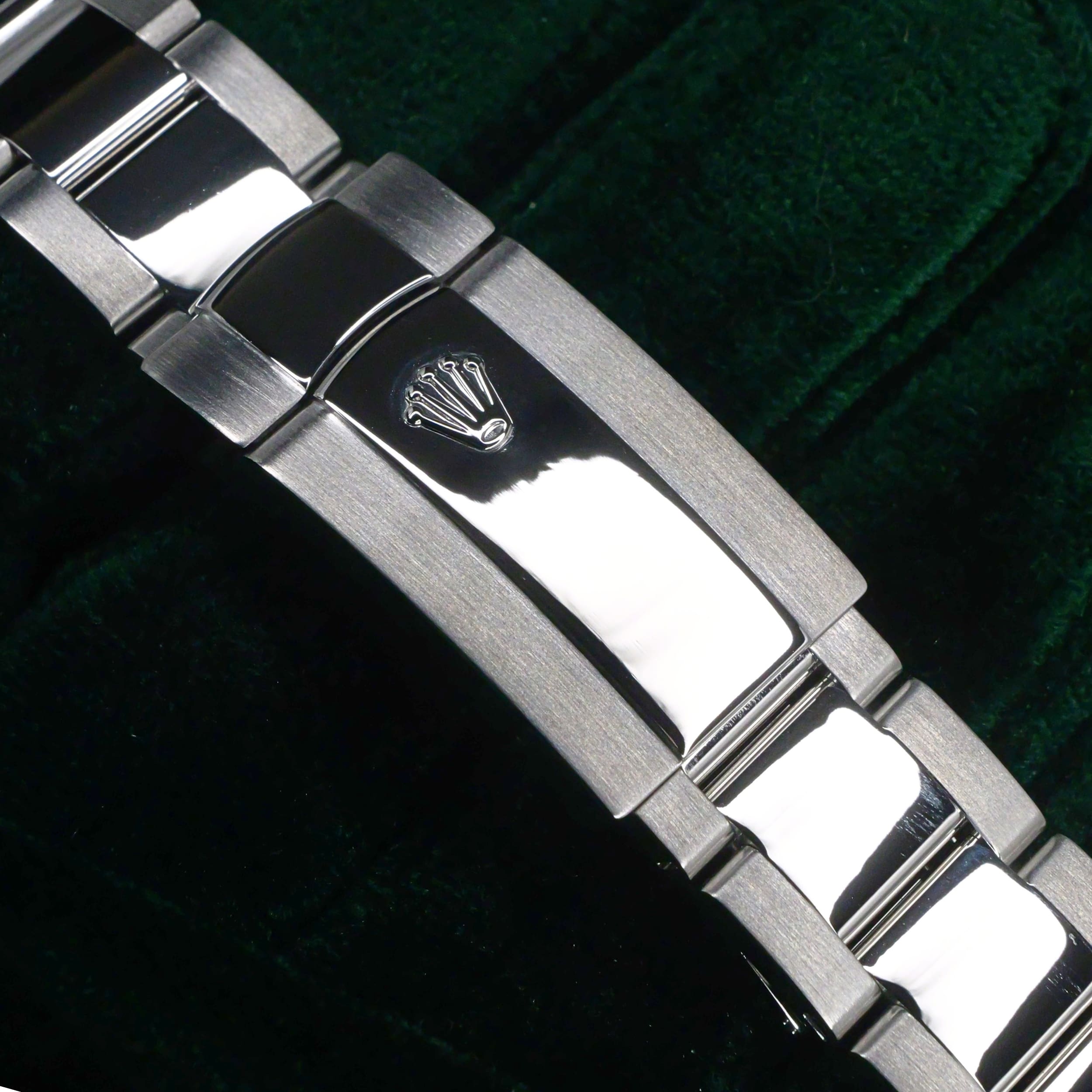 Presents itself in mint condition with little to no signs of wear. Featuring a sunburst grey dial, its finely brushed surface plays subtly with light, offering depth and versatility while maintaining a composed, understated character. Showcasing the smooth Oystersteel case, the polished bezel creates a clean, uninterrupted silhouette that leans elegant rather than overtly sporty. Completing the composition, the Oyster bracelet unites brushed and polished links for a cohesive, balanced presence that feels both refined and effortlessly wearable.