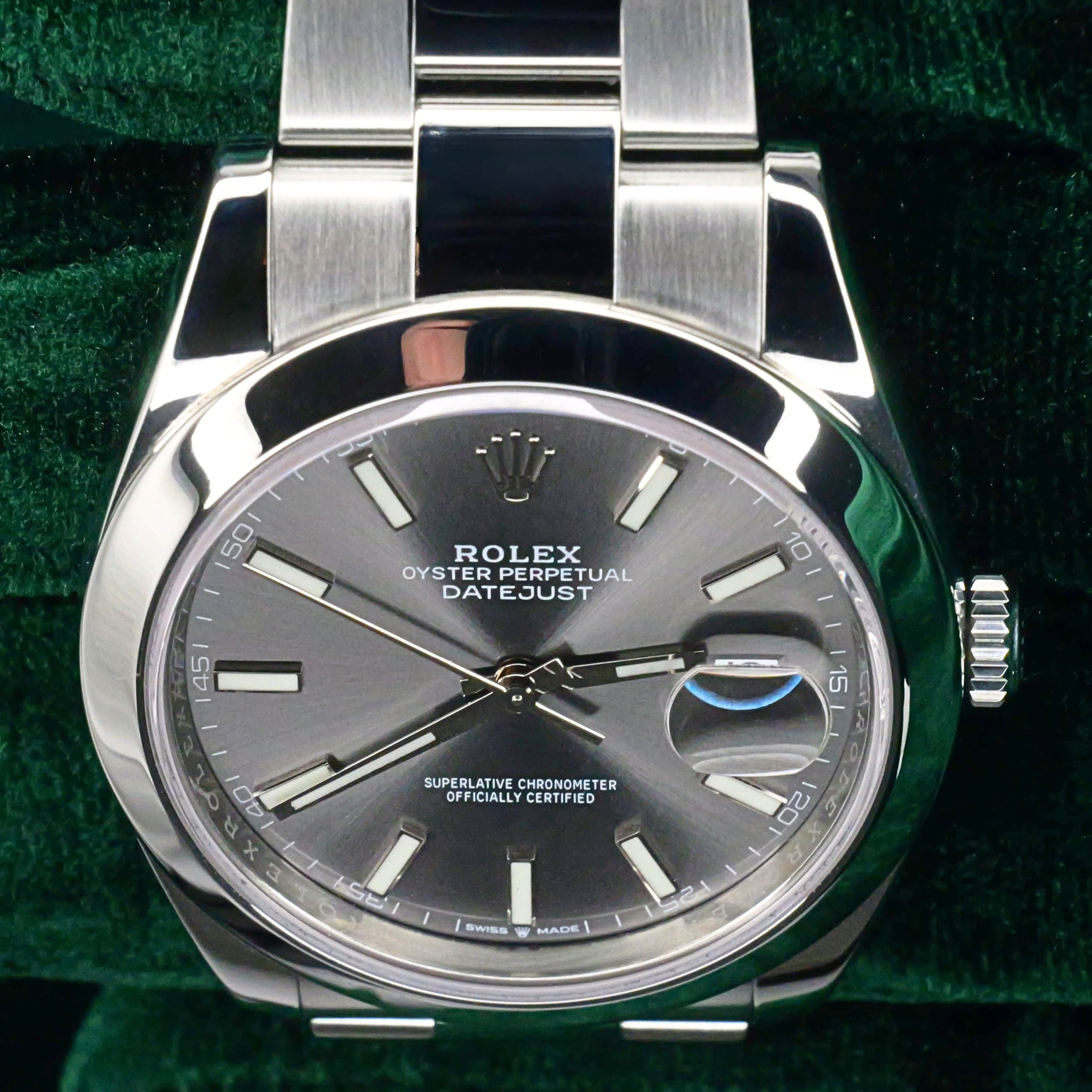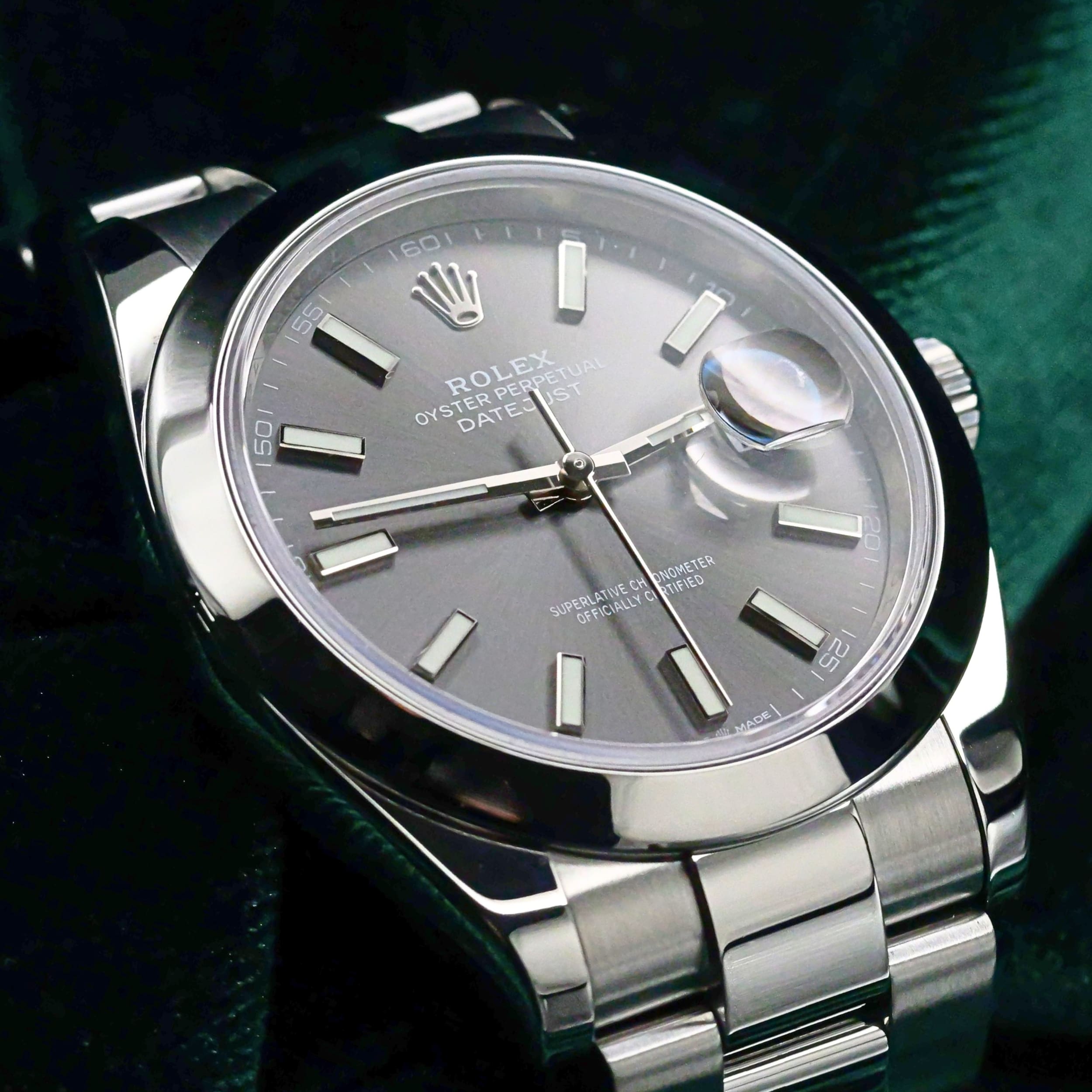 Anchored in the enduring Datejust lineage, this configuration represents Rolex’s purest expression of everyday elegance. A sunburst grey dial paired with a smooth steel bezel creates a calm, modern aesthetic that feels effortlessly timeless rather than trend-driven.