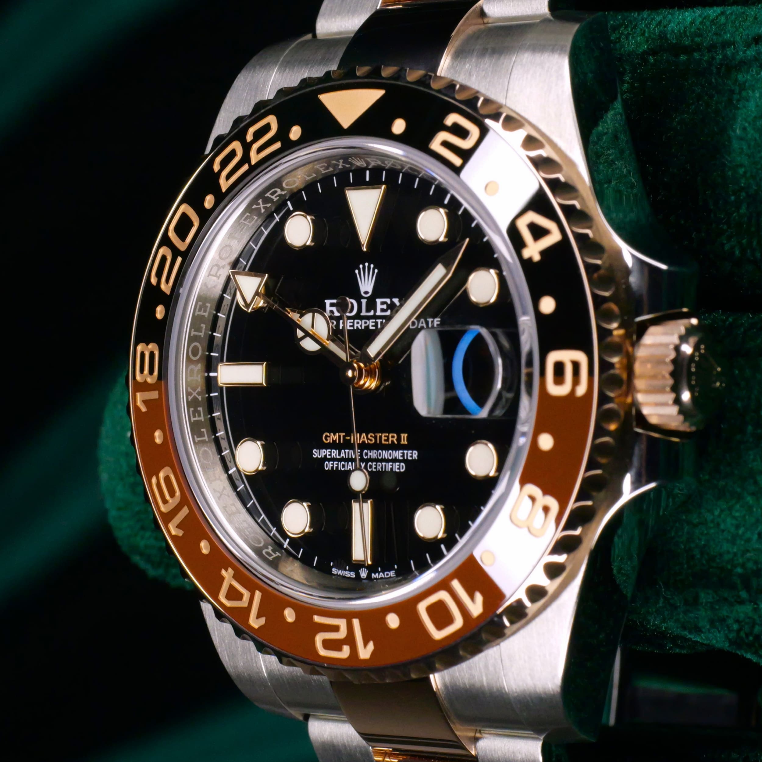 Nicknamed “Root Beer” for its resemblance to the famous soda, this timepiece features a black dial paired with a black and brown bezel. With the GMT complication with rose gold and stainless steel, the unique combination truly stands out from its competition.