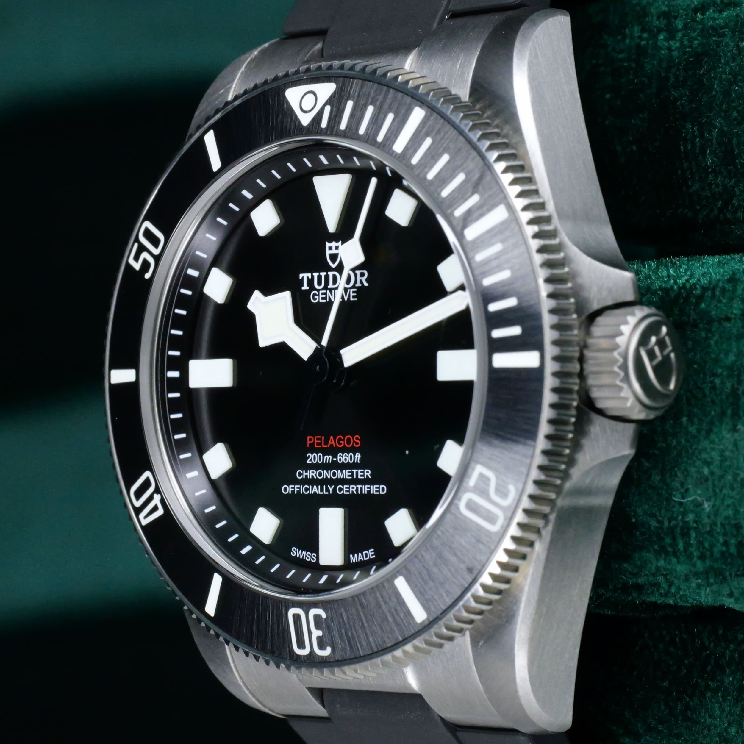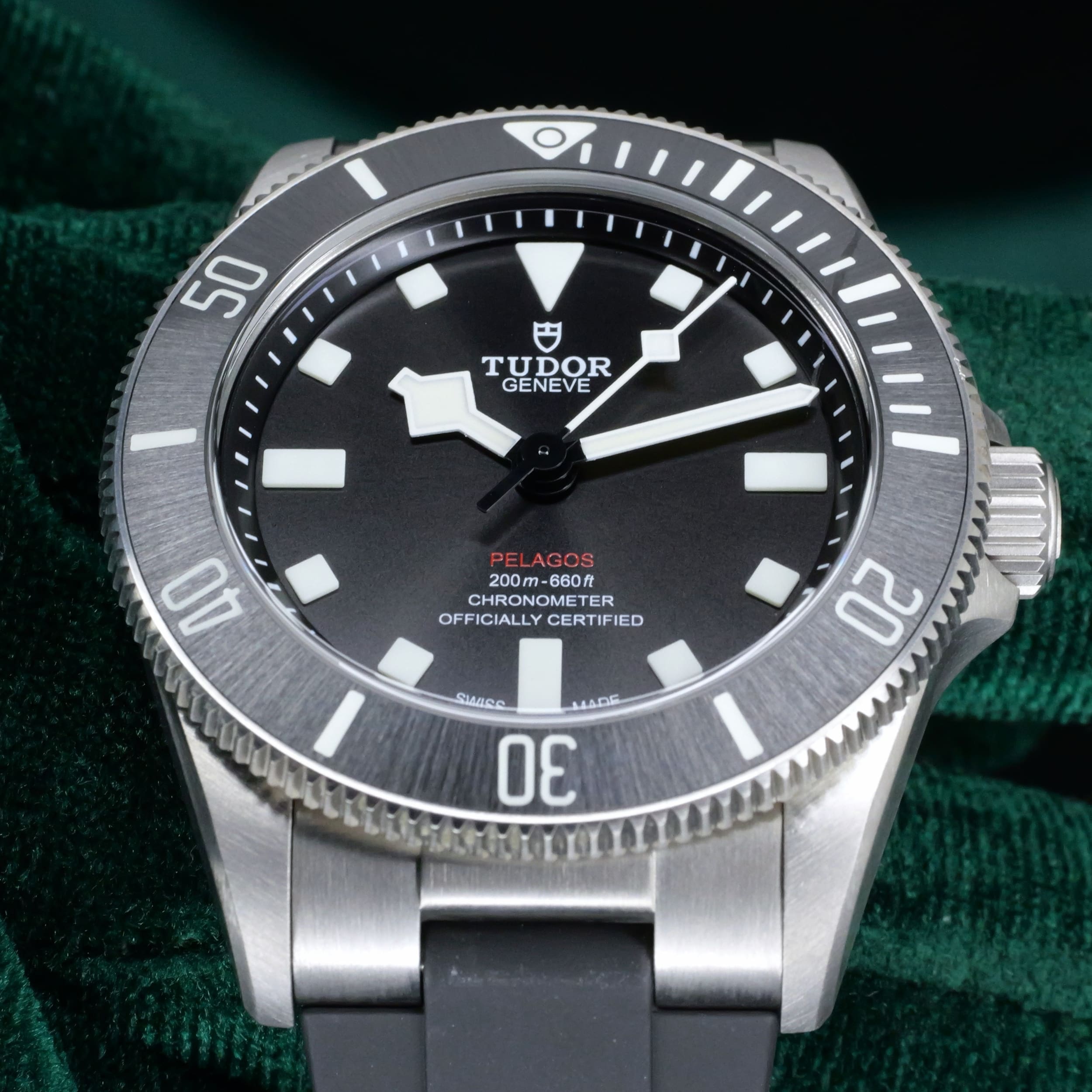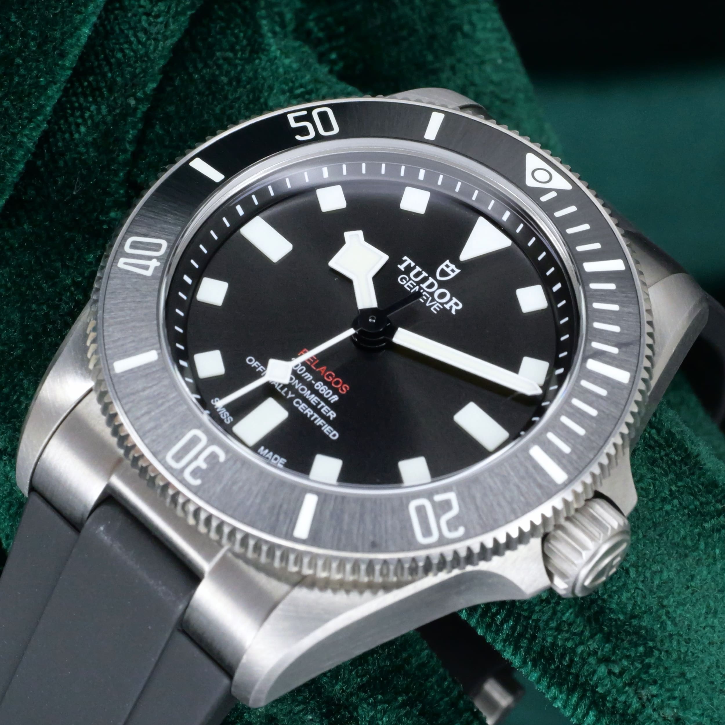 Encased entirely in grade 2 titanium with a 39mm profile makes this reference highly versatile in wereability and professional dive capability. Small enough to fit under a dress shirt cuff with a slim 42mm lug-to-lug measurement makes it a rare feat for a typical professional dive watch.