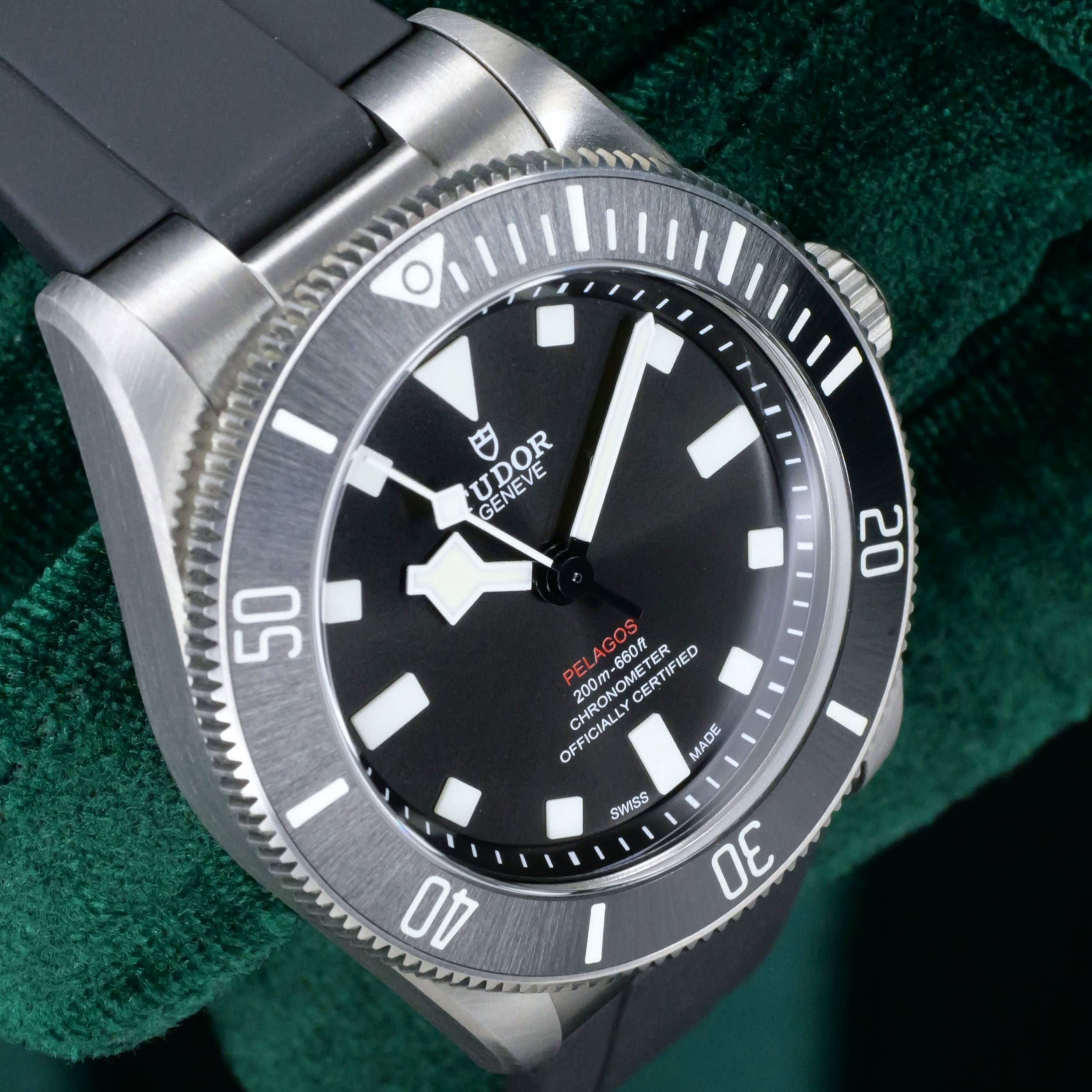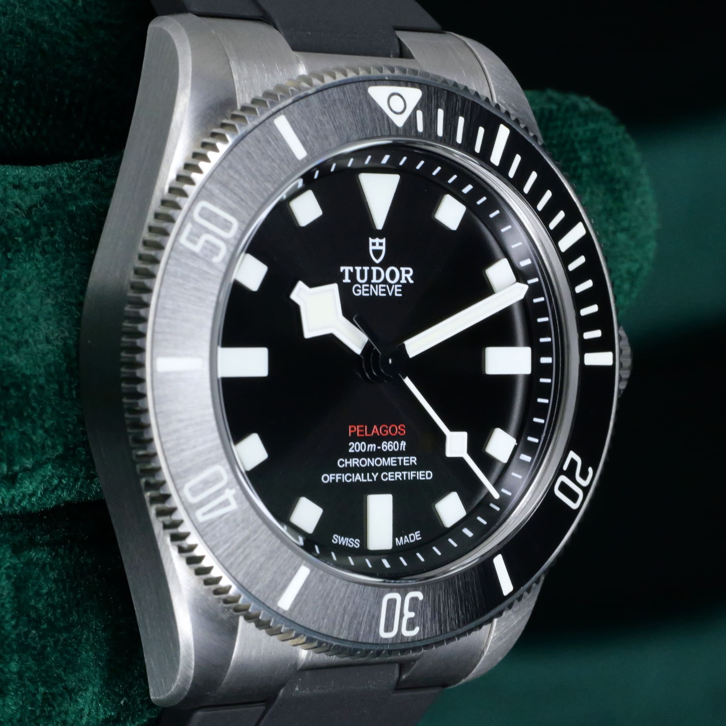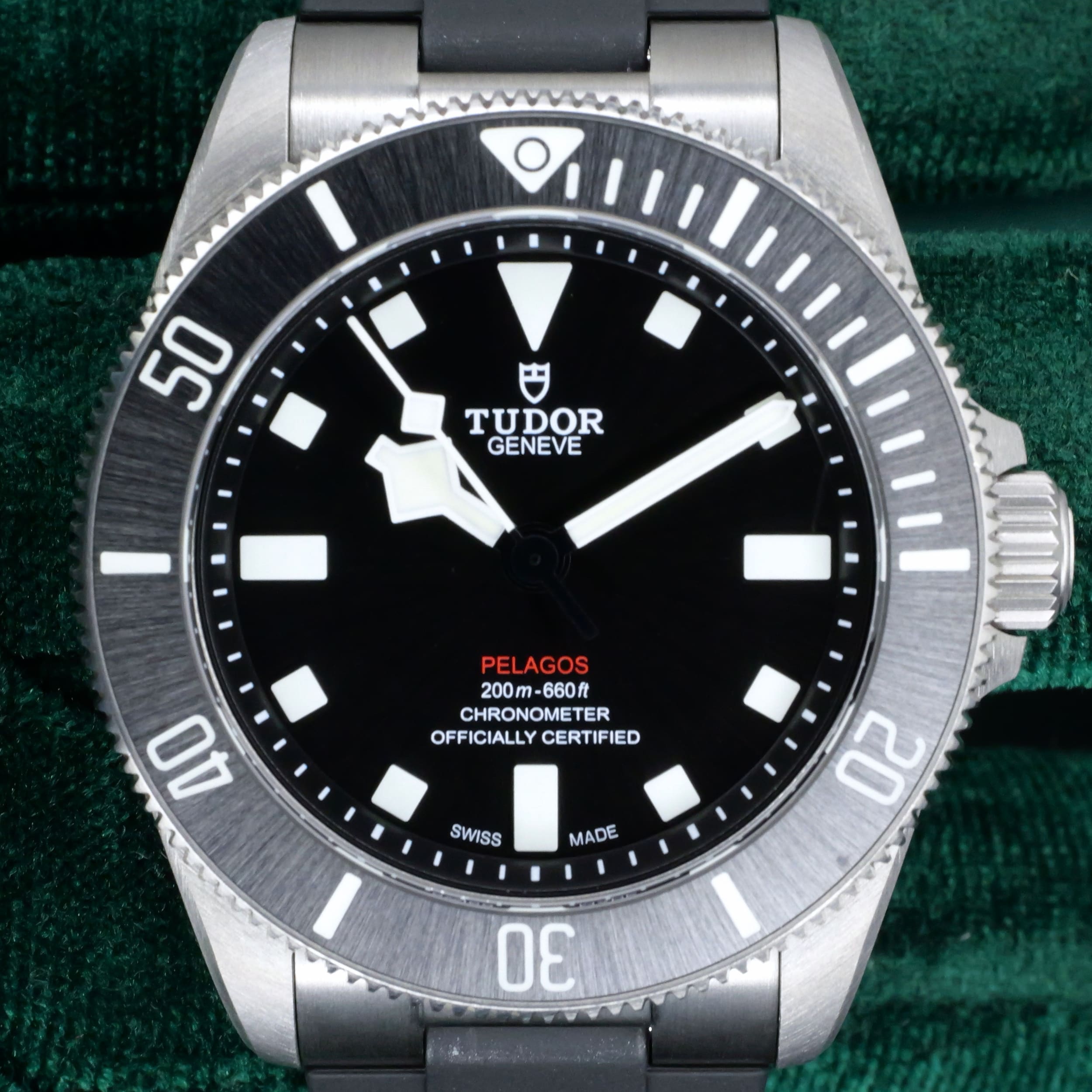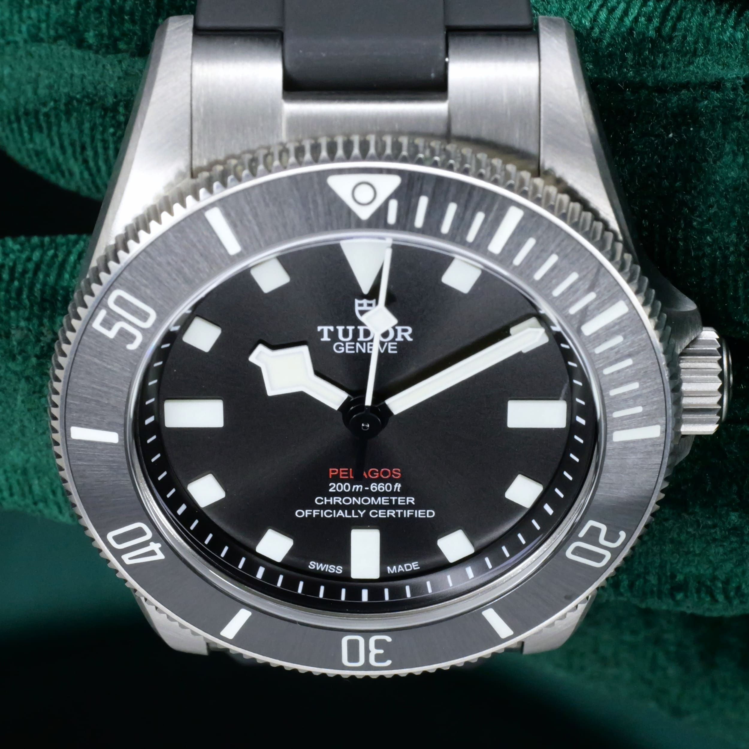 Encased entirely in grade 2 titanium with a 39mm profile makes this reference highly versatile in wereability and professional dive capability. Small enough to fit under a dress shirt cuff with a slim 42mm lug-to-lug measurement makes it a rare feat for a typical professional dive watch.
