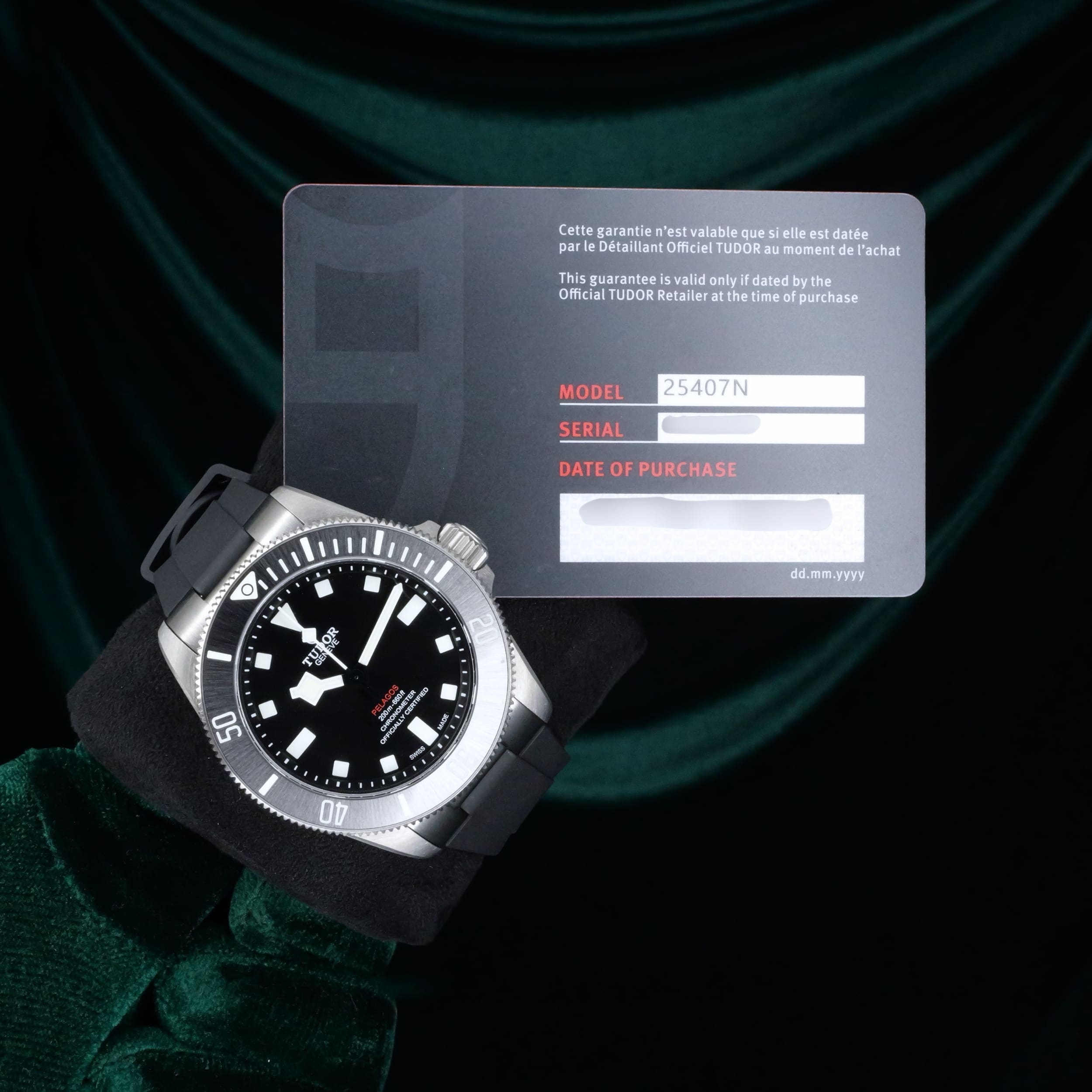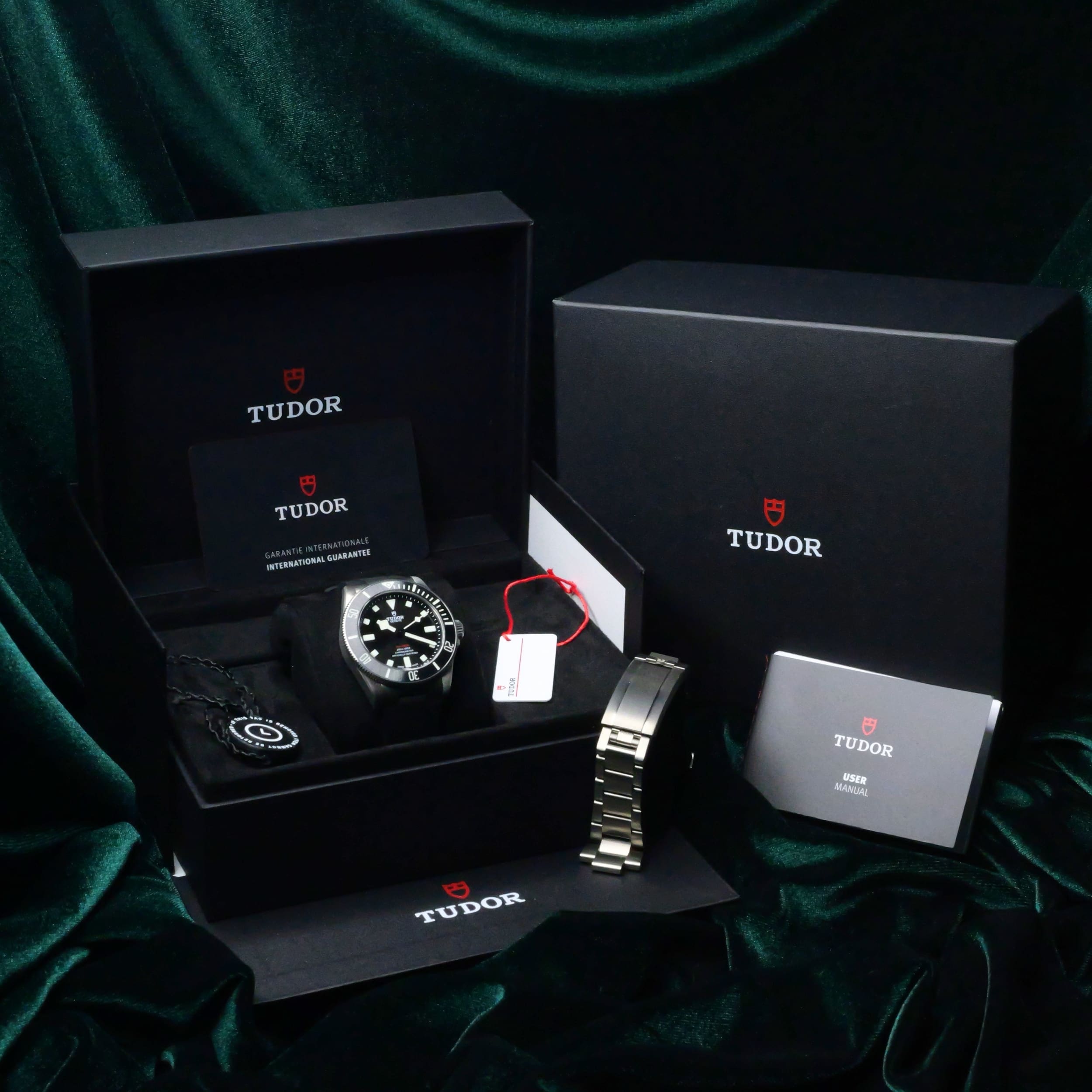 Comes as a full set, double-boxed with warranty card, warranty, white/black tags, complimentary rubber strap and diver’s extension.