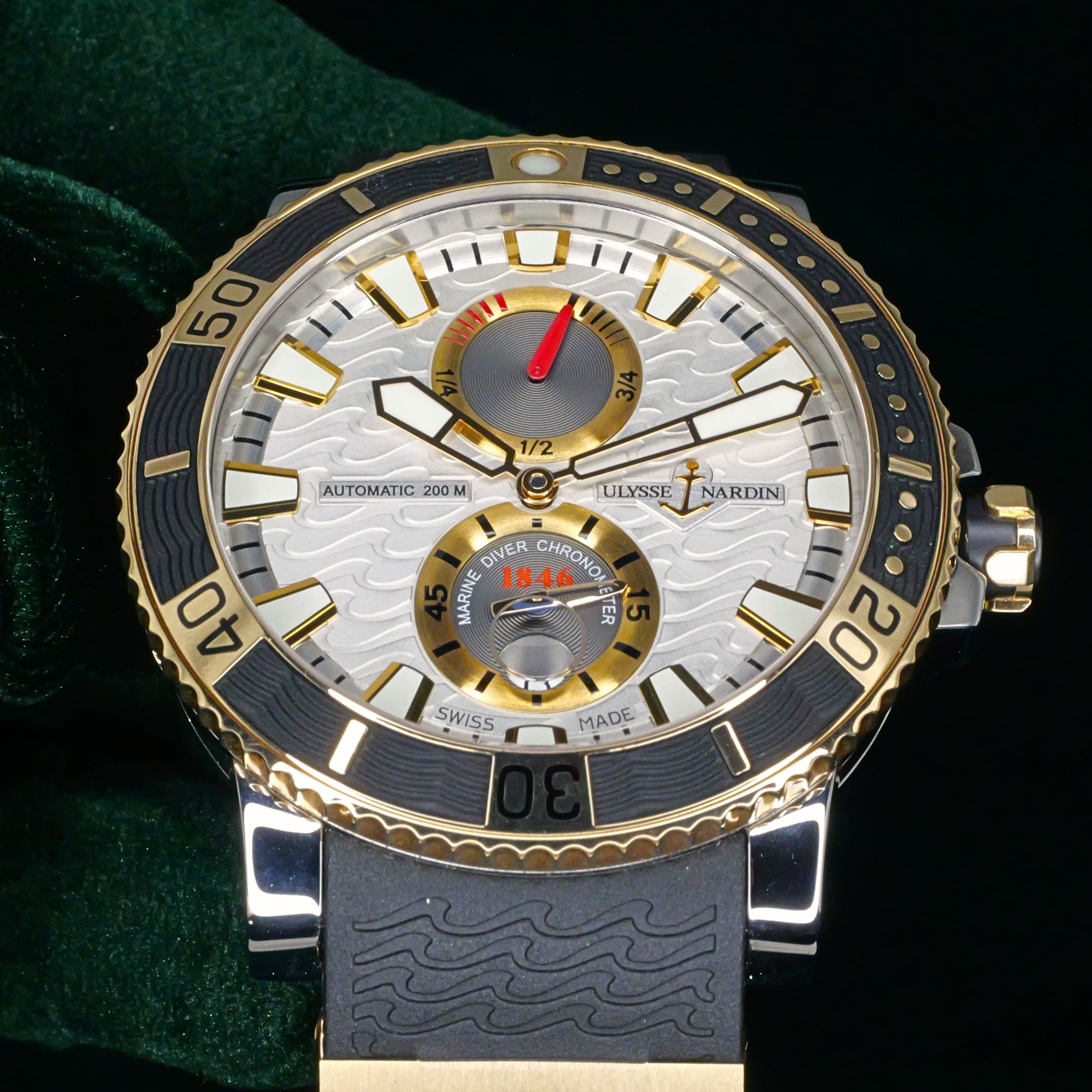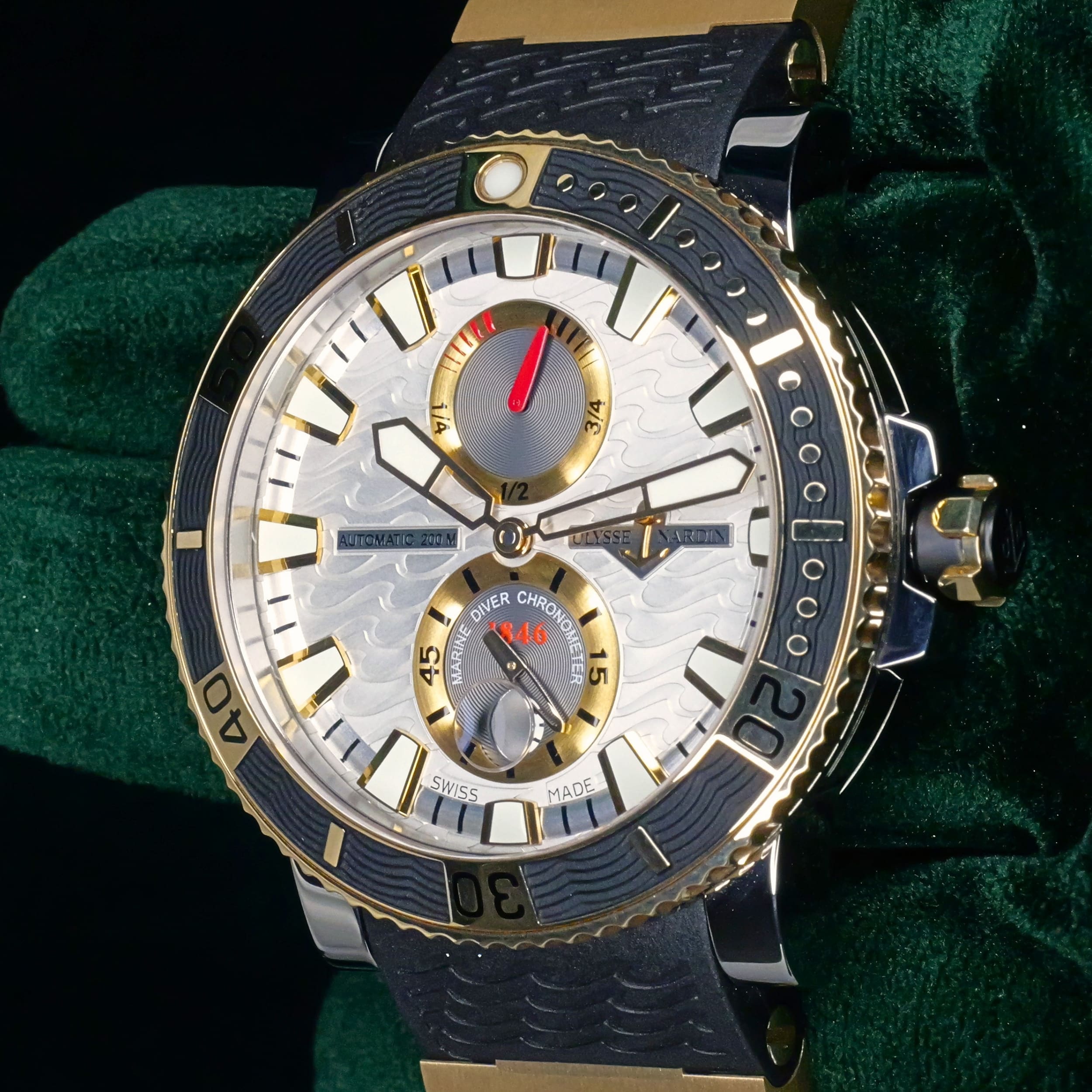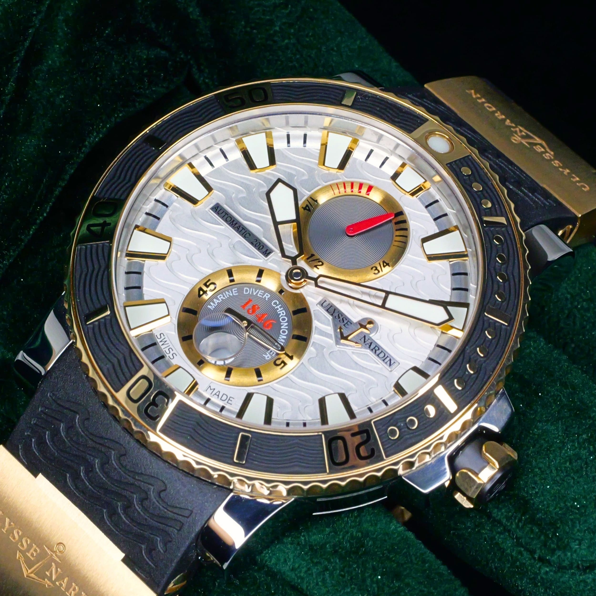 Built from a brand historically known for supplying marine chronometers to naval forces, this Maxi Marine Diver carries that legacy forward with a modern dive-ready design. Its silver wave dial and two-tone construction bring together function and presence in a way that feels both purposeful and distinct.