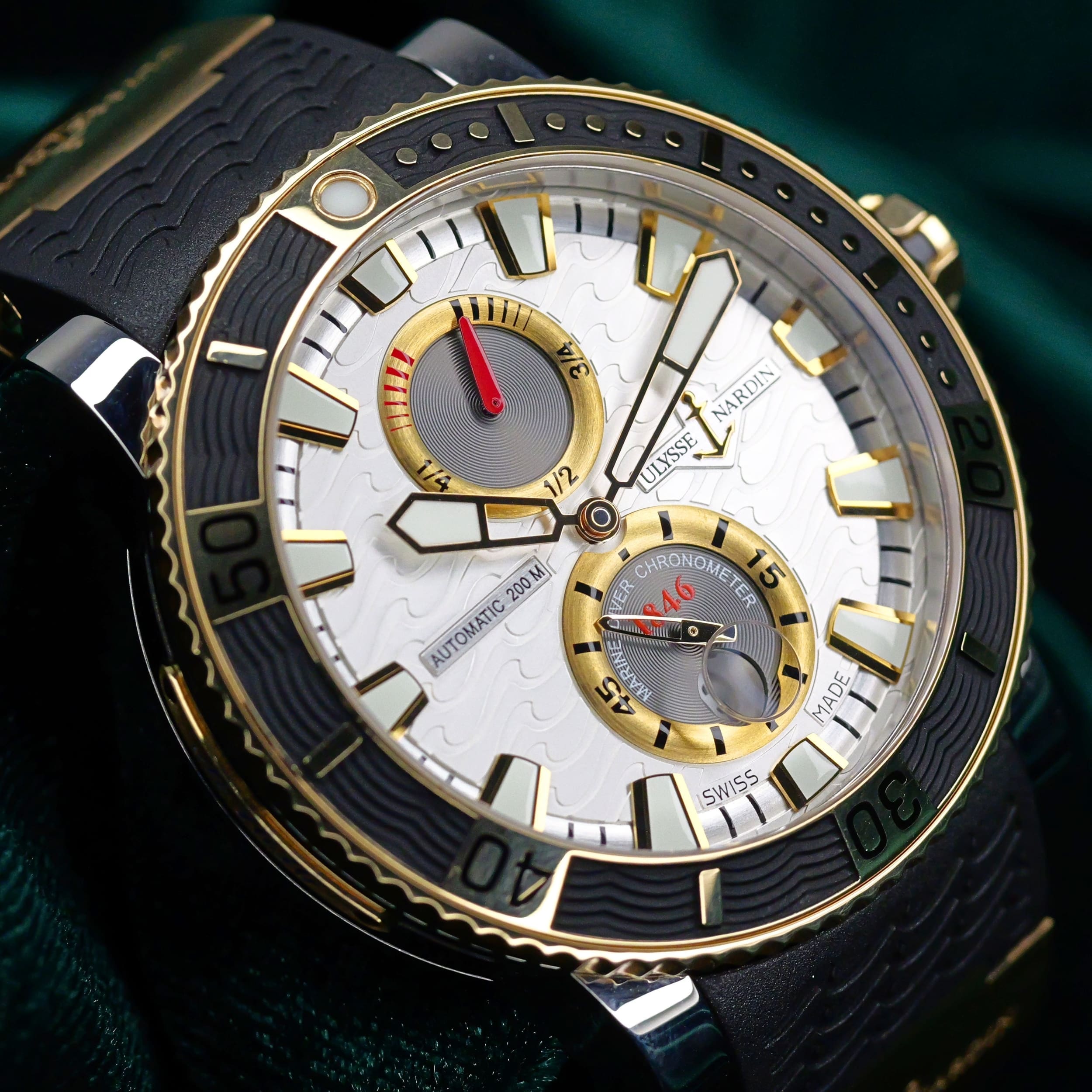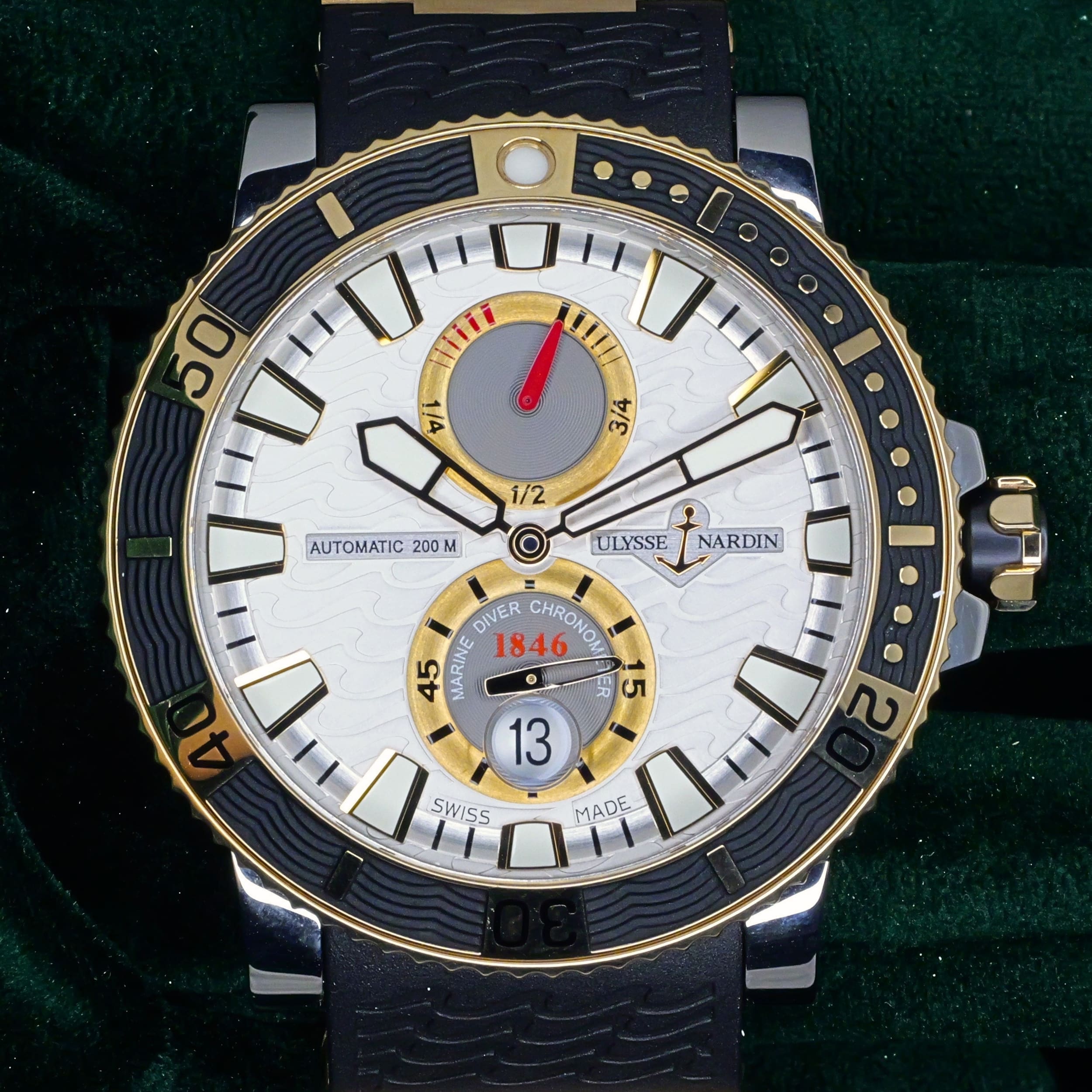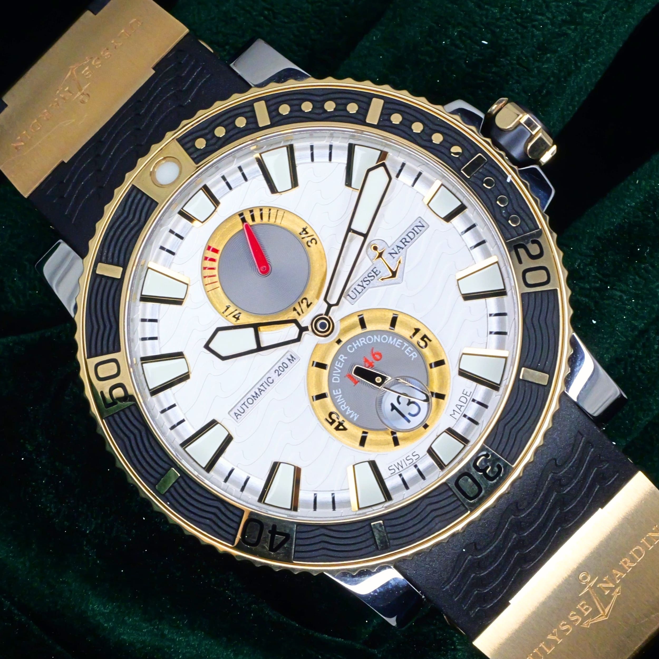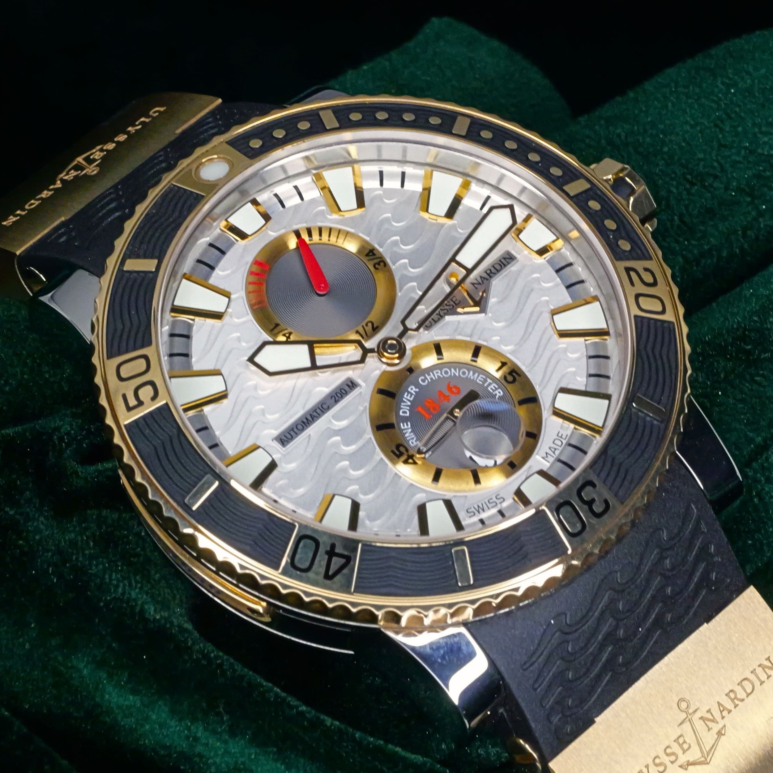 Built from a brand historically known for supplying marine chronometers to naval forces, this Maxi Marine Diver carries that legacy forward with a modern dive-ready design. Its silver wave dial and two-tone construction bring together function and presence in a way that feels both purposeful and distinct.