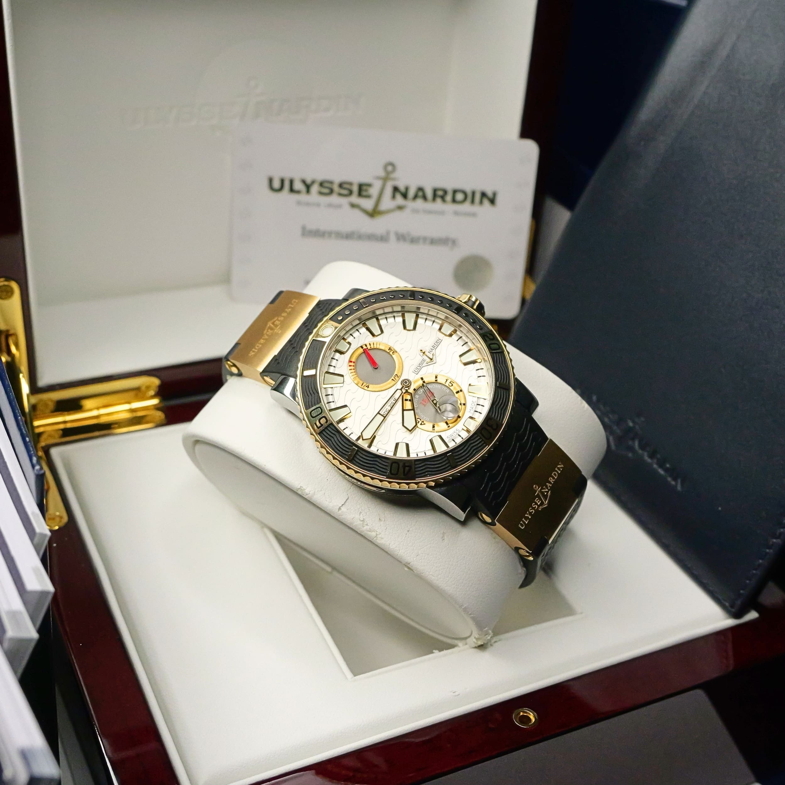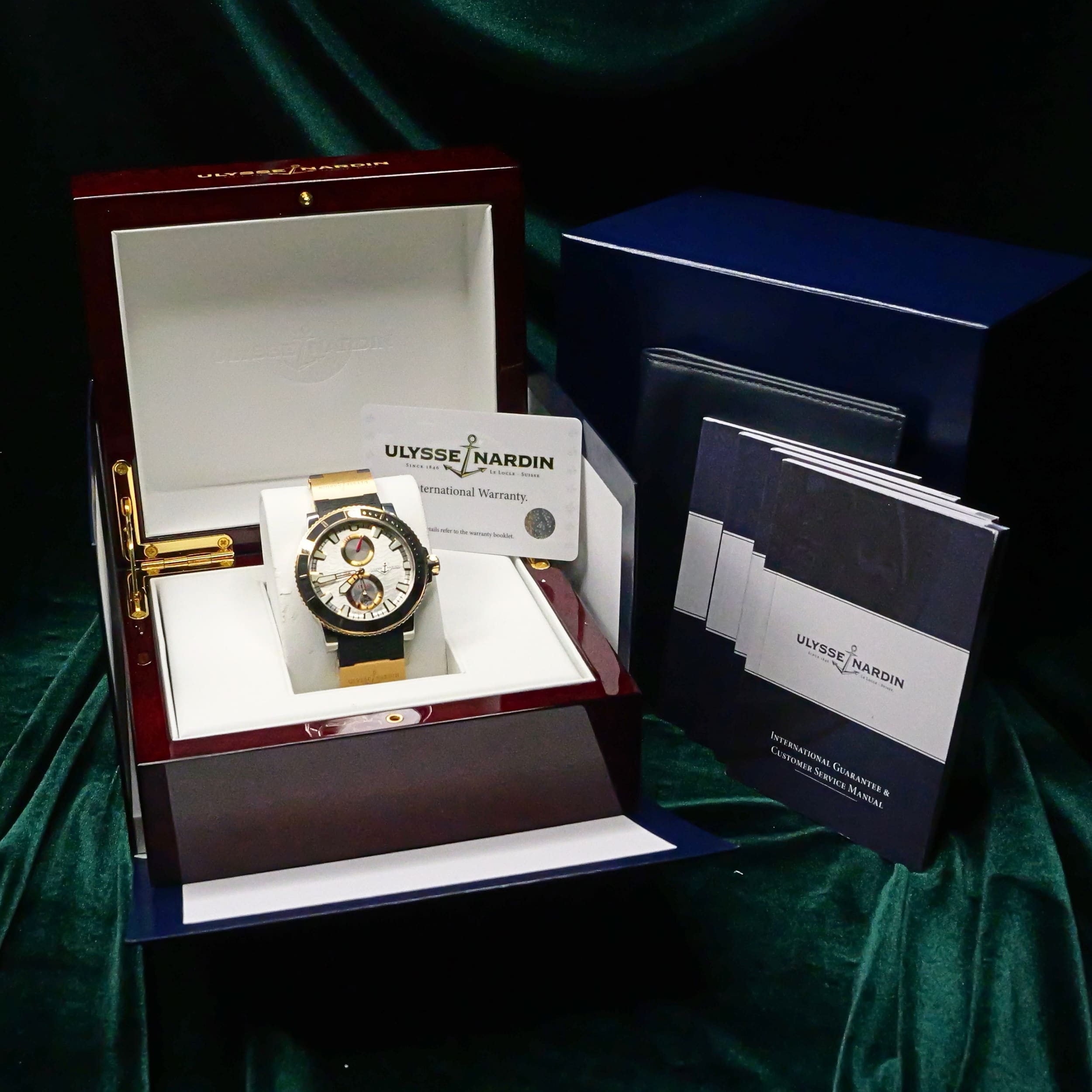 Comes as a complete set, double-boxed with inner wooden display box, outer box, warranty card, instruction manuals, and booklets.