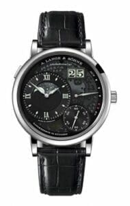 Introduced at SIHH 2016, the Grand Lange 1 Moonphase Lumen pairs the aesthetics of the 2013 Grand Lange 1 Lumen with the 2014 Grand Lange 1 Moonphase design. The dial is done in a combination of blackened silver and tinted sapphire. For this model, the L095 movement is fitted with a moonphase disc made of glass. The Grand Lange 1 Moonphase Lumen is a limited edition of 200 pieces.