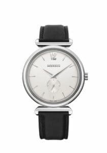 The Première is Alexandre Meeron’s interpretation of the classic dress watch. It is elegant, understated and contemporary; the Première reveals its architecture as you wear it. This luxury watch is timeless. The asymmetric hands enable greater readability, while the case is curved to fit your wrist perfectly. Only noble materials are used, and every element of the movement is decorated, even if it is not visible, to reflect the integrity of Alexandre Meerson. It is uncompromising, unpretentious and designed for the strong and self-assured individual. As for every Alexandre Meerson luxury watch, the Altitude Première Small Seconds can be tailored for the perfect fit.Reference: 101-PEJUIndication: hours, minutes, date, small secondsPower: mechanical self-winding movementDiameter (mm): 41.00Thickness (mm): 8.59Material: titaniumDial colour: white silver with rhodium appliquesCase back: clear sapphire crystalCrystal coating: double coated anti-glareBuckle: traditional buckle in titanium