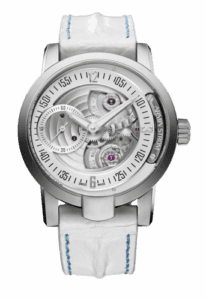 The Armin Strom Gravity collection was introduced at BaselWorld 2013, featuring the brand’s first self-winding movement – with the micro-rotor powering it being visible through the open-worked dial.Like other Armin Strom ‘Air’ models, the Gravity Water features a titanium case. The off-center dial ring is white.