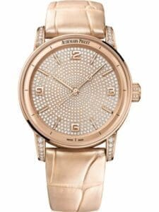 The Audemars Piguet CODE 11.59 collection was introduced at SIHH 2019. Available in a number of configurations, all of the watches in this line feature a distinct case design with an octagonal mid-case sandwiched between a round top and back, paired with hollowed-out lugs.The CODE 11.59 reference 15210OR.ZZ.D208CR.01 features a diamond-set white gold case and a diamond-set dial. It is powered by caliber AP 4309..