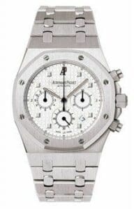 The Audemars Piguet Royal Oak 25960BC.OO.1185BC.01 was introduced in the year 2000. It features a white gold case and matching bracelet, which are paired with a silver dial.