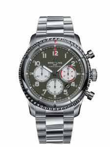 The Breitling Aviator 8 (formerly known as Navitimer 8) B01 Chronograph 43 Curtiss Hawk was introduced in February of 2019 as an homage to the American aircraft manufacturer Curtiss Wright and its most famous plane, the Crutiss P-40 Warhawk. It features a matte military green dial with silver sub dials. The see-through case back is printed with a Curtiss inscription and an image of an airborne P-40 Warhawk.Reference AB01192A1L1X1 is fitted with a canvas strap with tang buckle.Reference AB01192A1L1X2 is fitted with a canvas strap with folding clasp.Reference AB01192A1L1A1 is fitted with a stainless steel bracelet.
