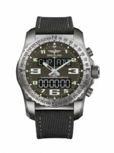 This new Breitling Cockpit B50 is a multifunctional electronic pilot’s chronograph. The watch is powered by the in-house Caliber B50 (quartz, an exclusive Breitling development) with analog and digital display, which is housed in a titanium case of 46mm.