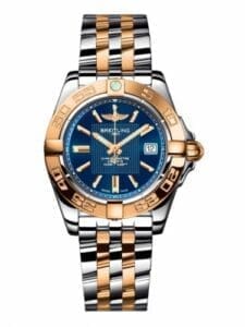 Building on its resolutely technical vocation, Breitling distinguishes itself by its original interpretation of the feminine vision of time. For the brand with the winged B, a ladies’ watch must combine performance and elegance, reliability and refinement. The Galactic 32 is a prime example. This feminine and yet sporty timepiece expresses the ultimate in luxury, embodied in its exquisitely crafted dial. As with many Breitling watches, the Galactic 32 is available in a wide variety of metals, dial colors and types of straps and bracelets. Powering this watch is the quartz caliber 71.Reference C71356L2|C813 features a stainless steel & rose gold case and a Metallica Blue dial.