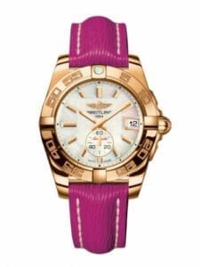 Designed for women wishing to enjoy a blend of refined luxury and uncompromising technical sophistication, the Galactic 36 Automatic stands out by its generous diameter that is nonetheless extremely elegant on the wrist. The case in steel, steel & rose gold or rose gold houses a chronometer-certified mechanical movement. The dial is available in various colors, while versions featuring mother-of-pearl and diamonds lend an especially glamorous touch. The models are fitted with a choice of metal bracelets, or leather straps available in a wide variety of colors.Reference H3733012|A724 has a rose gold case and a mother-of-pearl dial.