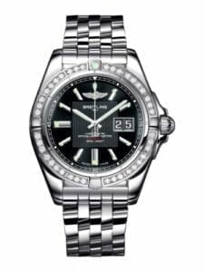 The ultra-sporty, versatile and sophisticated Galactic 41 is intended for Breitling fans whose activities do not necessarily require chronograph functions, but who are looking for a watch in the typical Breitling style. One of its most distinctive features lies in its double-window calendar providing an optimal date display. The chronometer-certified selfwinding movement is housed in a sturdy case that is water-resistant to 300 m (1,000 ft). The Galactic 41 is available in steel and steel & rose gold versions, with an optional gemset bezel.