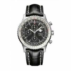Breitling Navitimer 1461Issued in a 1,000-piece steel limited edition, this Grande Complication Navitimer chronograph combines the famous circular aviation slide rule with a “leap-year calendar” requiring correction only once every four years – meaning 1,461 days. The ultra-sophisticated movement comprises over 450 parts. The date, day and month are displayed on three subdials complemented by a moon-phase aperture standing out against the black background.REF. A1937012.BA57.760P
