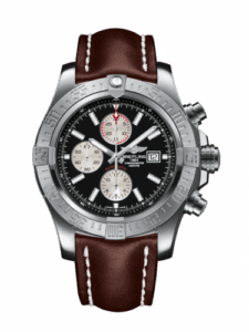 The Super Avenger II reflects the full force and personality of the Breitling brand. This genuine thoroughbred is distinguished by its oversized case with a diameter of 48 millimeters. The generous size of its dial and hands ensures optimal read-off of both the time and the measured times; the non-slip crown and pushers are extremely easy to handle. Like the other models in this range, it provides a well above-average of water resistance, since it is designed to withstand a pressure of 30 bars, or the equivalent of 300 meters (1.000 ft). To power this chronograph, Breitling has chosen a mechanism well up to the task in the shape of the sturdy Caliber 13, the most tried and tested of all movements used by Breitling.