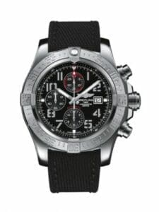 The Super Avenger II reflects the full force and personality of the Breitling brand. This genuine thoroughbred is distinguished by its oversized case with a diameter of 48 millimeters. The generous size of its dial and hands ensures optimal read-off of both the time and the measured times; the non-slip crown and pushers are extremely easy to handle. Like the other models in this range, it provides a well above-average of water resistance, since it is designed to withstand a pressure of 30 bars, or the equivalent of 300 meters (1.000 ft). To power this chronograph, Breitling has chosen a mechanism well up to the task in the shape of the sturdy Caliber 13, the most tried and tested of all movements used by Breitling.