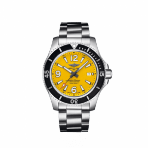 The Superocean 44, with its 44-millimeter stainless-steel case, was introduced at BaselWorld 2019. This watch was initially only available with either a black or blue dial and a choice of a matching Diver Pro II rubber strap or a stainless-steel bracelet. It has a ratcheted unidirectional bezel. The Superocean 44 is capable of joining you on all of your underwater adventures up to a depth of 100 bar (1000 meters).The pictured watch sports a bright yellow dial; this was added to the collection in Septtember of 2019.