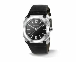 The Bvlgari Octo Solotempo 102121 BGO38BSLD features a distinct eight-sided case, inspired by an original design by the late Gerald Genta. Its many sides, facets and alternating finishes give the Octo a luxurious and sculpted feel. This watch is powered by a mechanical ‘manufacture’ movement with automatic winding and date, decorated with perlage, côtes de Genève and chamfering finishing.