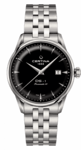 The Certina DS-1 reference C029.807.11.051.00 has looks inspired by the first DS concept watches of the 1960’s, but inside its 40.00mm Stainless Steel case ticks a resolutely modern self-winding ‘Powermatic’ movement (caliber C07.111) with an impressive 80 hours of power reserve. The dial is Black.