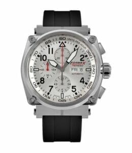 The Formex Pilot watch is an aviation watch characterized by an oversized case with the brand’s patented suspension system, and an large and legible dial.Reference 1100.1.8040.910 is powered by caliber 7750. The movement is housed in a titanium container, which in turn is fitted in a stainless steel case. The dial is silver.