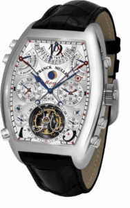 While generally known for its colorful tonneau-shaped watches, Franck Muller has some serious pedigree when it comes to Grand Complications. Although his nickname ‘Master of Complications’ might be self-touted, it is to some degree a valid claim. Remember the Piguet/ Muller/ Gerber watch made for Lord Arran? If you don’t, look it up – the write-up by Magnus Bosse and John Davis is worth a read. Plus at one time (or still?) this watch is said to have been listed in the Guinness Book of World Records.But back to the Aeternitas Mega 4. This watch is a Grande Complication in the traditional sense of the word, offering a chronograph (monopoussoir with flyback function), a calendar (perpetual of course) and chimng functions ( a Westminster Carillon sonnerie). It is housed in an impressive 42.00 mm x 61.00 mm x 19.15mm case, making sure you don’t go unnoticed while wearing this haute horlogerie masterpiece.