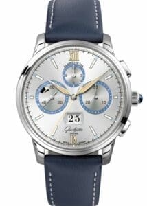 The Glashütte Original Senator Chronograph Panorama Date introduced in 2014 with either a platinum or red gold case, housing the then new caliber 37-01 chronograph movement. At BaselWorld 2017, the brand added a stainless steel version with black dial, giving the watch a sleek yet utilitarian look while simultaneously lowering the price. A silver dial was added in 2018, and in the same year the Capital Editions -in either stainless steel, red gold or platinum- also made their debut.Reference 1-37-01-06-03-35 has a platinum case and a calf leather strap with folding clasp.Reference 1-37-01-06-03-55 has a platinum case and a calf leather strap with shorter folding clasp.