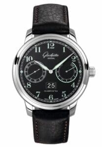In 2015 Glashütte Original took up the spirit of discovery once again with a new version of its Senator Observer, a sophisticated observation watch (also known as a ‘deck watch’) evoking the enthralling history of navigation at sea.The Saxon manufactory’s in-house dial manufactory has made extensive use of luminous surfaces to make the new Senator Observer easy to read in the absence of light: the elegant white gold hour and minute hands, bold Arabic numerals, and chapter ring hour indexes are all highlighted with green Superluminova, a phosphorescent pigment that absorbs light by day and emits it at night.The hand and indexes of the small seconds subdial at 9 o’clock and the power reserve indicator at 3 o’clock are also luminous by night. By day the matt black dial offers an elegant backdrop and contrast to the Arabic numerals, drawn in a font once widely used for precision pocket watches made in Glashütte at the beginning of the 20th century. At the centre of the lower half is the noted watchmaker’s compelling Panorama Date display.Reference 100-14-07-02-07 has a calfskin strap and a pin buckle.Reference 100-14-07-02-30 has a calfskin strap and a folding clasp.Reference 100-14-07-02-50 has a calfskin strap and a short folding clasp.Reference 100-14-07-02-70 is fitted with a stainless steel bracelet.