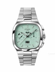 The Glashütte Original Seventies Chronograph Panorama Date 1-37-02-15-02-70 was added to the collection in 2023. This watch has a stainless steel case paired with an ‘Vibing’ Blue dial.