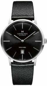 Paying a proud tribute to a Hamilton best seller from days gone by, the new timepiece makes an elegant statement through the purity of its design. The black or silver-colored dial is domed and plays host to two lightly curved hands, an expression of the quintessential character of Hamilton watchmaking.