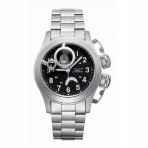 Hamilton is established as one of the leading watchmakers in the world with a proven reputation for creating elegant and reliable timepieces. The watches combine a strong American spirit with the unrivalled precision of the latest Swiss movements and technology.The Khaki line comprises the Hamilton military watches with their long and strong tradition. “Khaki” originates from the Hindu word for earth or dust and has long been the color used for military uniforms. Today the color is associated with adventure and the current Khaki watches in the Hamilton collection are direct descendents of their heroic forerunners that served the forces in both world wars.REFERENCE – H77746133NAME – Khaki Navy FROGMAN CHRONOSTRAP – SteelREF. STRAP – # H605.777.101 //
