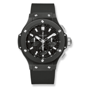 The Big Bang is the watch that signalled the rebirth of Hublot under the leadership of Jean-Claude Biver, who introduced a concept called ‘The art of Fusion’ to describe the direction of brand. This watch was launched in 2005, only one year after Biver took leadership of the brand. The look was inspired by the Hublot of days gone by, though injected with a healthy dose of steroids whilst often using a mix of materials as demanded by the Art of Fusion concept.Reference 301.CI.1770.RX is done in Hublot’s signature ‘Black Magic’ look.