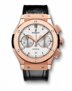 With the Hublot Classic Fusion 45 Chronograph, Hublot offers a chronograph with a design that’s slightly less aggressive than its Big Bang counterparts. The case measures 45mm across. It holds the self-winding caliber HUB1143.Reference 521.OX.2611.LR has a ‘King’ red gold case and a silver dial.
