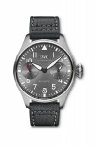 The IWC Big Pilot Patrouille Suisse reference IW 5009-10 is a 250 piece limited edition of IWC’s Big Pilot made in honour of the Patrouille Suisse. It features a stainless steel case in blasted finish and a slate-coloured dial with sunburst finish. It is powered by caliber 51011, with small seconds hand instead of the large central seconds hand found on the regular big pilot.